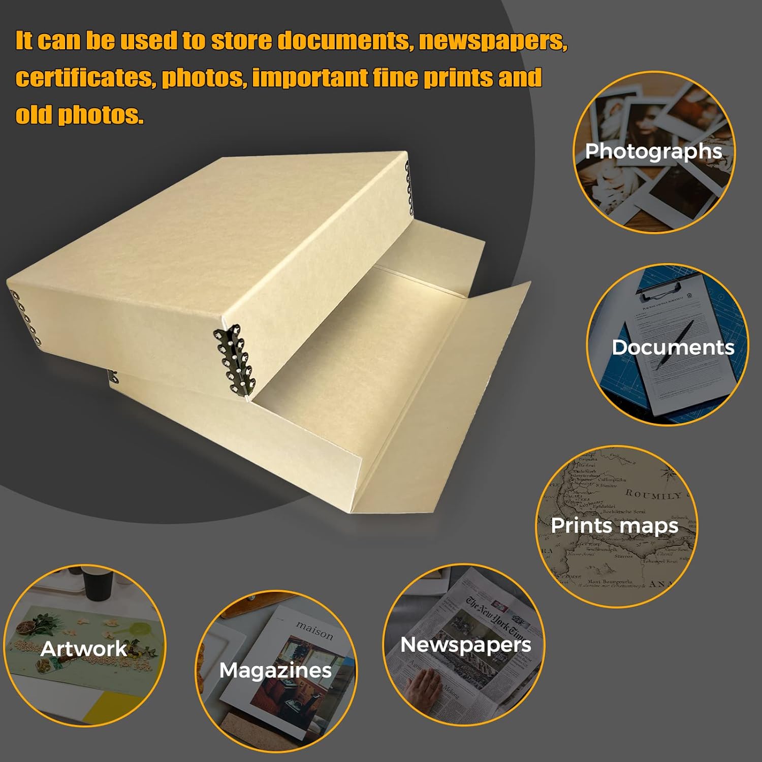 Golden State Art, Archival Storage Box, Acid-Free Drop Front Museum Box with Metal Edge for Storing Artwork Photos Documents Prints Arts And Crafts (Tan-9.75x12.75x 3 Inches)