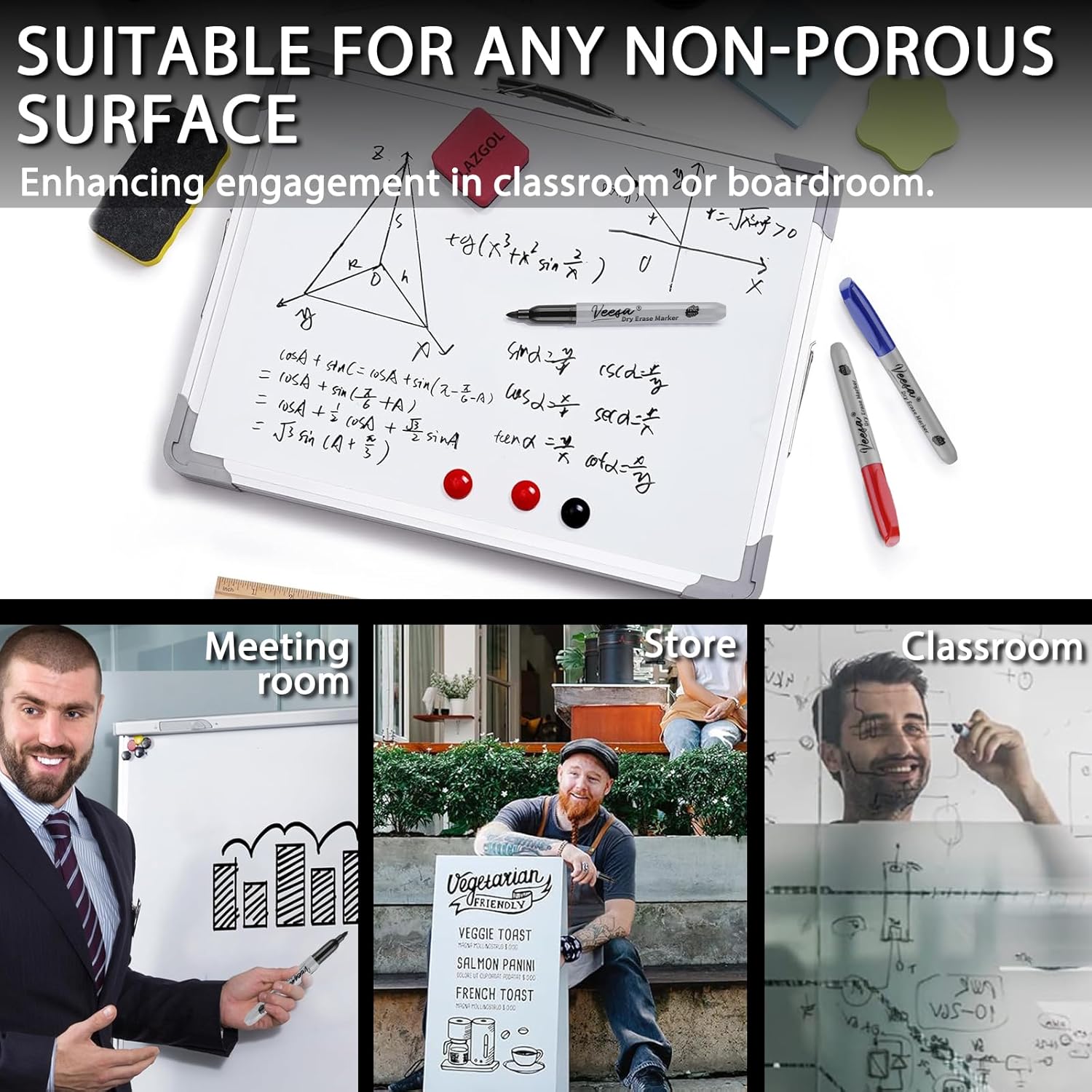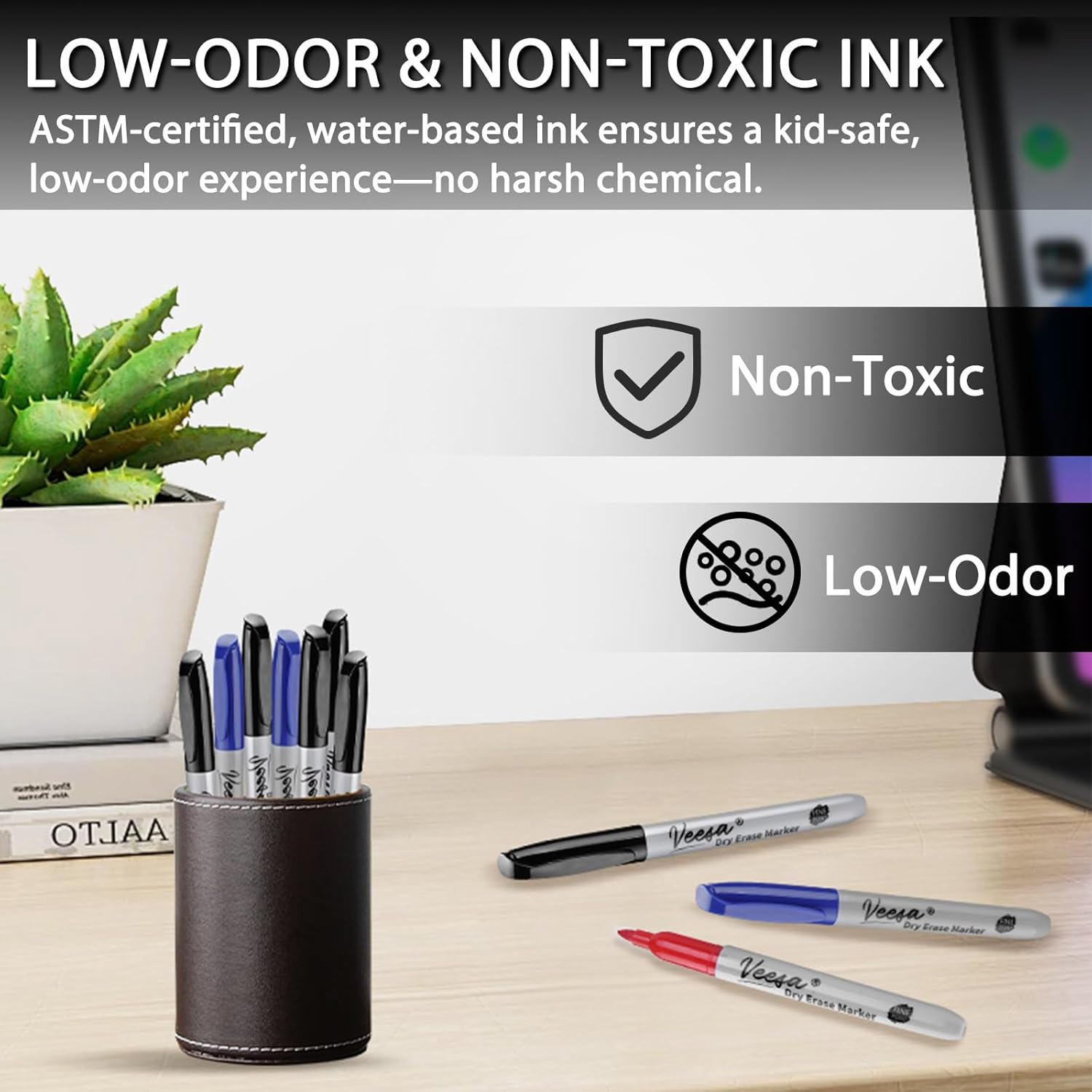 - Fine-tip Marker: Allows for precise writing and features a smooth and consistent writing experience, making it easy to write on whiteboards and most non-porous surfaces.