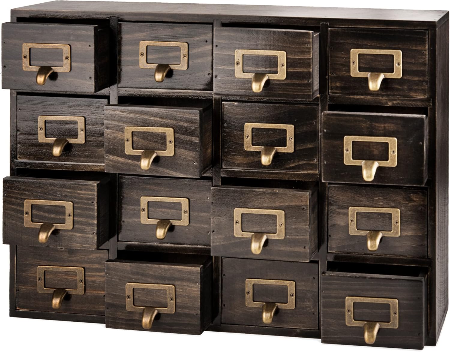 - A Touch of Noir for Every Surface - Breathe life into any corner with the Woodaholic 16-Drawer Wood Box. Bedecked in a captivating dark ash shade, this unique drawer unit seamlessly harmonizes with your modern or retro-themed surroundings, igniting a spark of elegance in your bedroom or workstation.