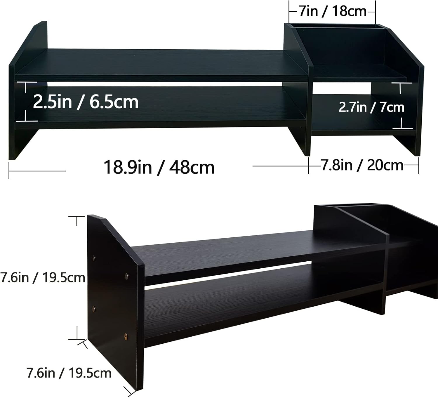 Computer Monitor Riser, 2 Tier Wooden Stand With Two Layer Storage Rack, Black Desktop Organizer for PC/Laptop, Home & Office