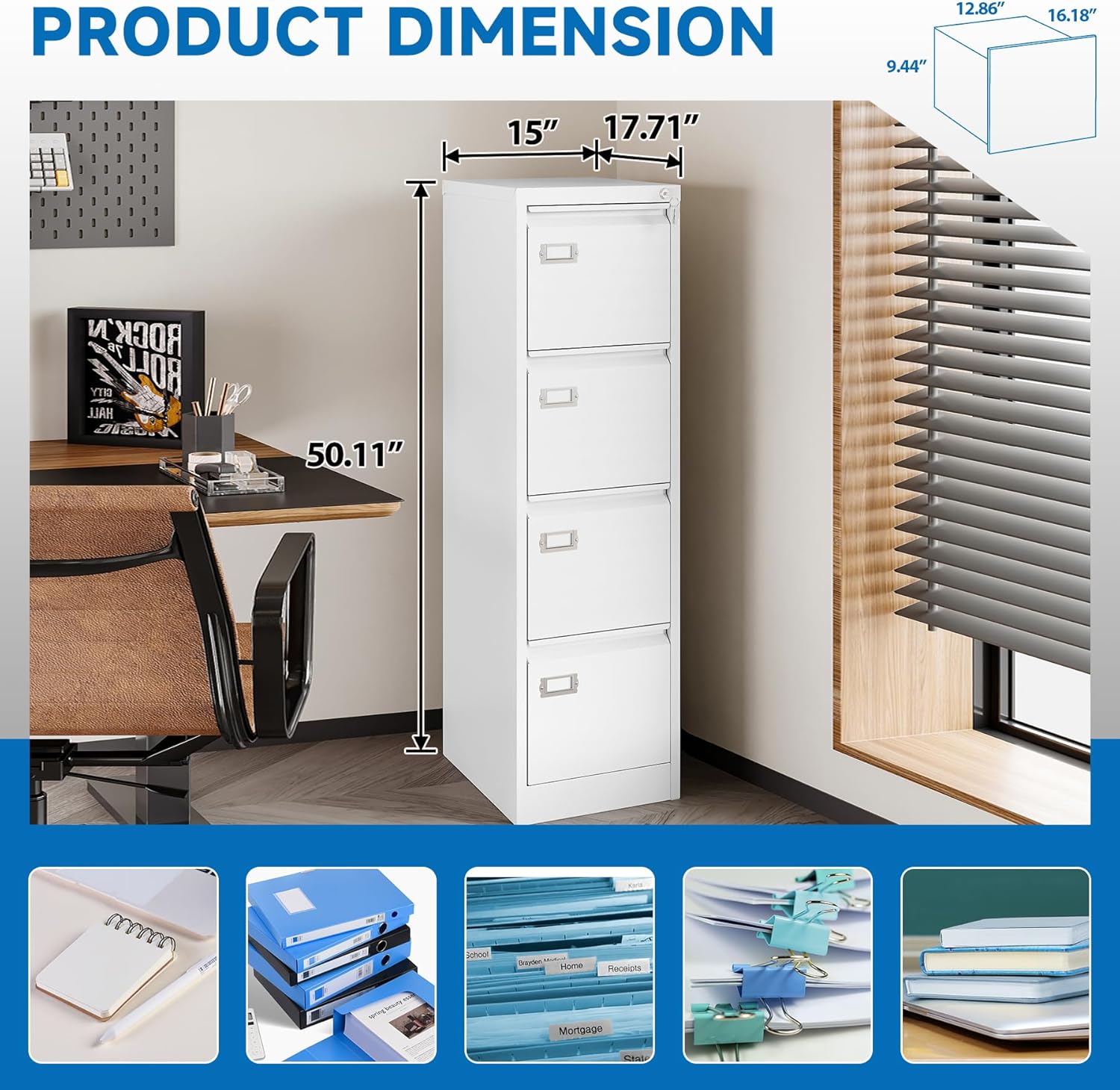 - 【HUMANIZED DESIGN】The steel ball bearing full extension drawer slide is noiseless, will not affect the work of others, and always maintain a quiet environment. The extra-long drawer handle design of the file cabinet makes it more convenient to open the drawer