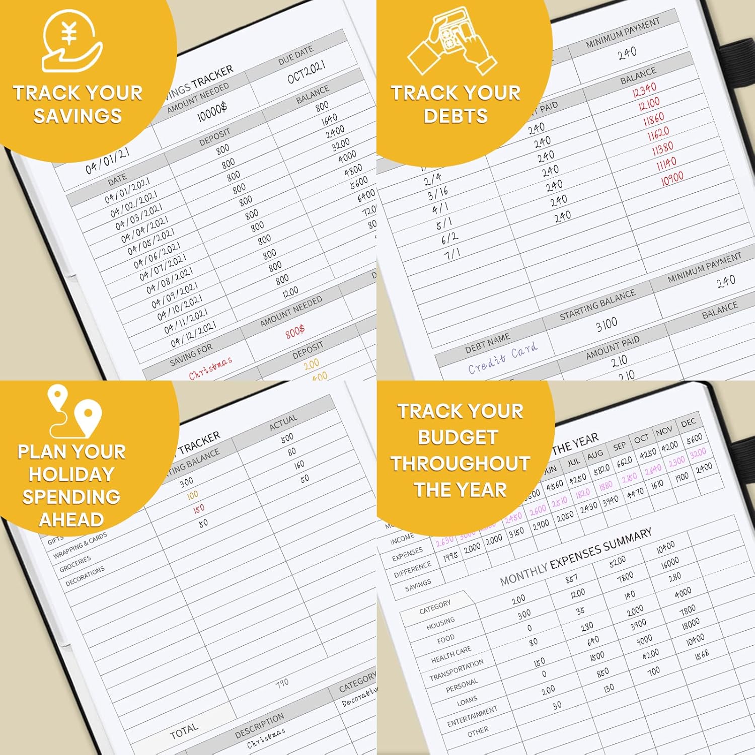 - FUNCTIONAL PERSONAL FINANCE WITH MONTHLY TABS: The financial ledger starts with 1 page of financial goals, 1 page of categorized financial strategies, 4 pages of expense tracker, 1 page of monthly reflection, 1 page of notes, through the 12 month plan, additional multiple layouts combined with annual summaries, monthly separator tab to track progress throughout the year, enabling a year-round perspective,