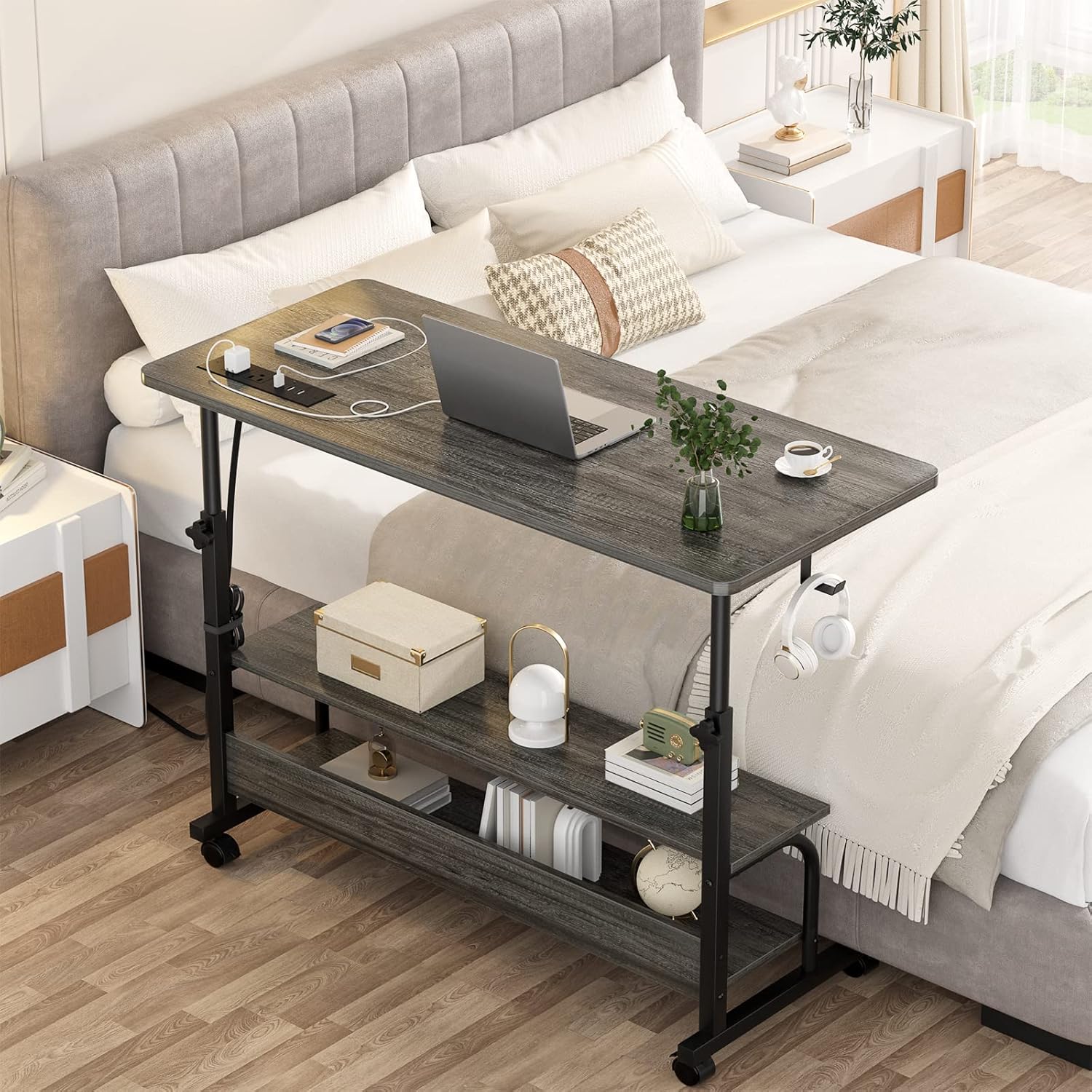 - ăHeight Adjustable & Widely ApplicationăOur portable adjustable desk can be adjusted height from 27.5-41 inches to meet your needs for desk height, protect you from headache, neck pain. The C-shaped design mobile standing desk is convenient for you to work, eat, holding dishes, snack, coffee, magazines, suitable for living room, bedroom, study, small space, especially beside any sofa and bed.
