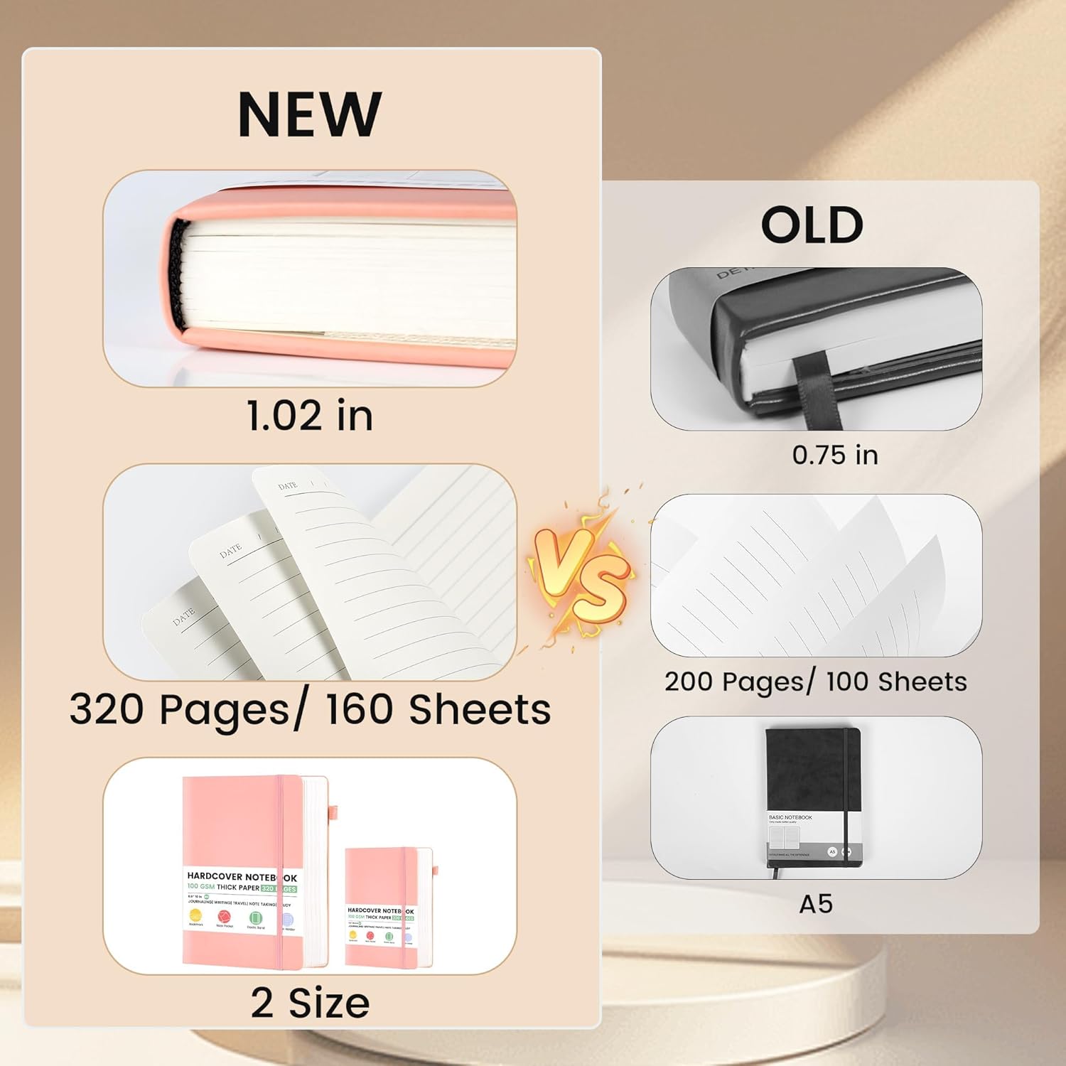 - 320 Pages Paper - Lined journal with 320 pages provides you with enough writing space. B5 notebook with 100gsm paper, thicker than normal paper, will not cause bleeding, ghosting or smudging and is suitable for most types of pens.