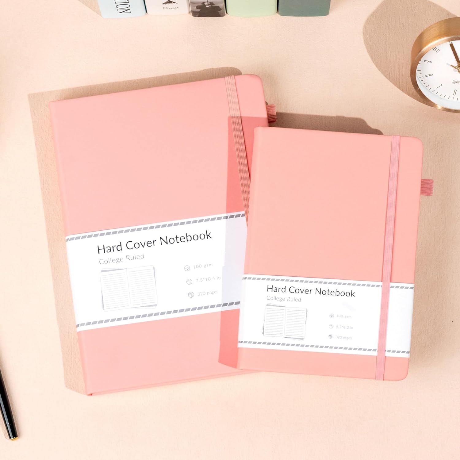 CAGIE Lined Journal Notebook, 320 Pages College Ruled Notebook, 100 Gsm Paper Thick Journal, B5 Hardcover Leather Journals for Writing Women, 7.6x10 In, Pink