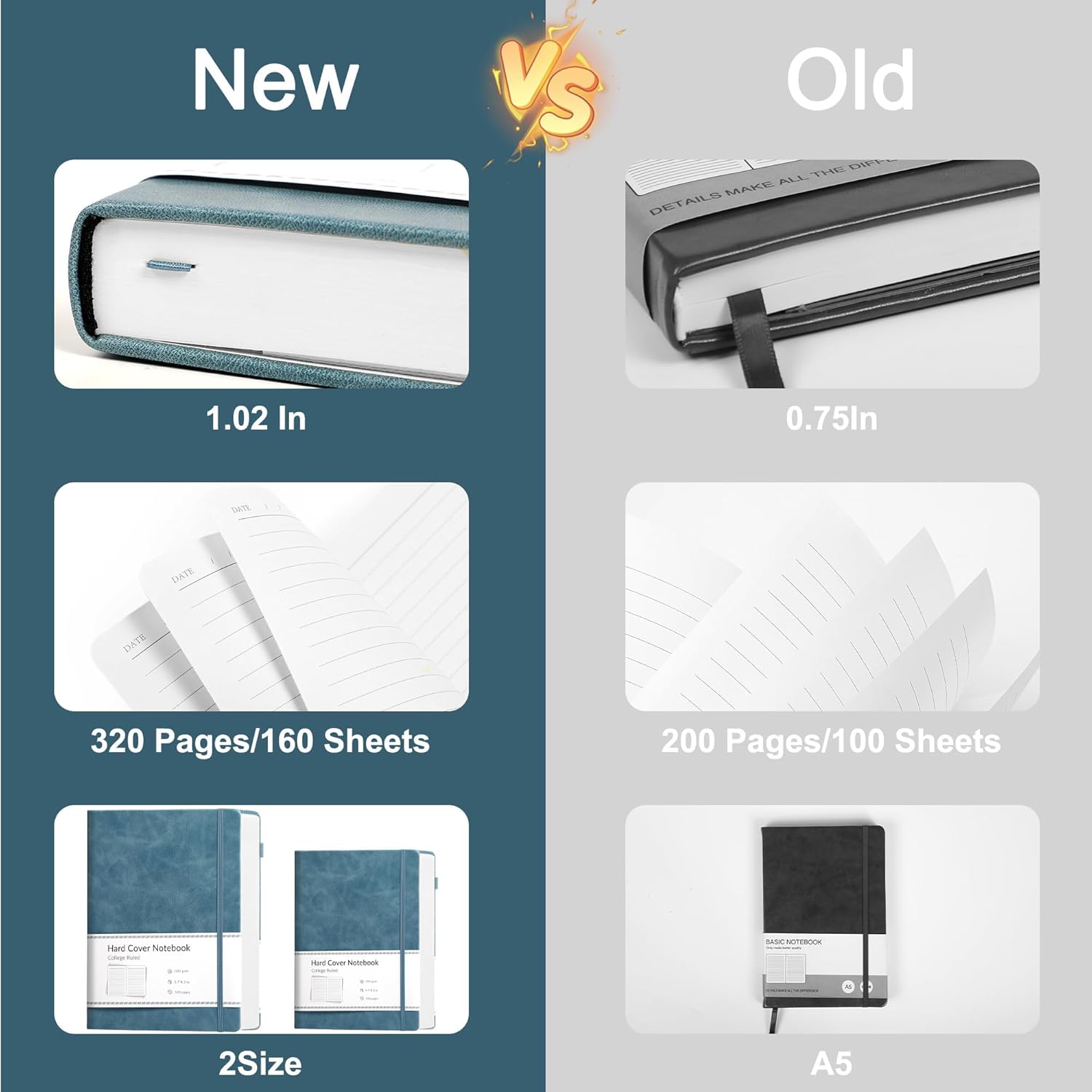 - 320 Pages Paper - Lined journal with 320 pages provides you with enough writing space. A5 notebook with 100gsm paper, thicker than normal paper, will not cause bleeding, ghosting or smudging and is suitable for most types of pens.