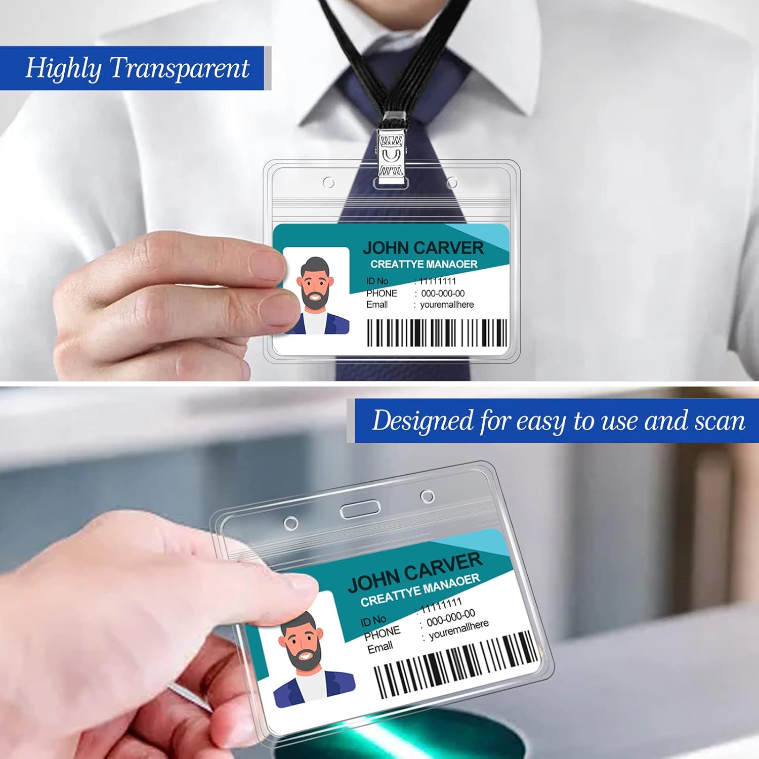 - Secure Protection: The ID card holder features a resealable zip lock that is easy to open and close, providing added security for your card. The Badge holders are designed with a dual-use hanging slot/holes, allowing you to easily attach it to a lanyard clip