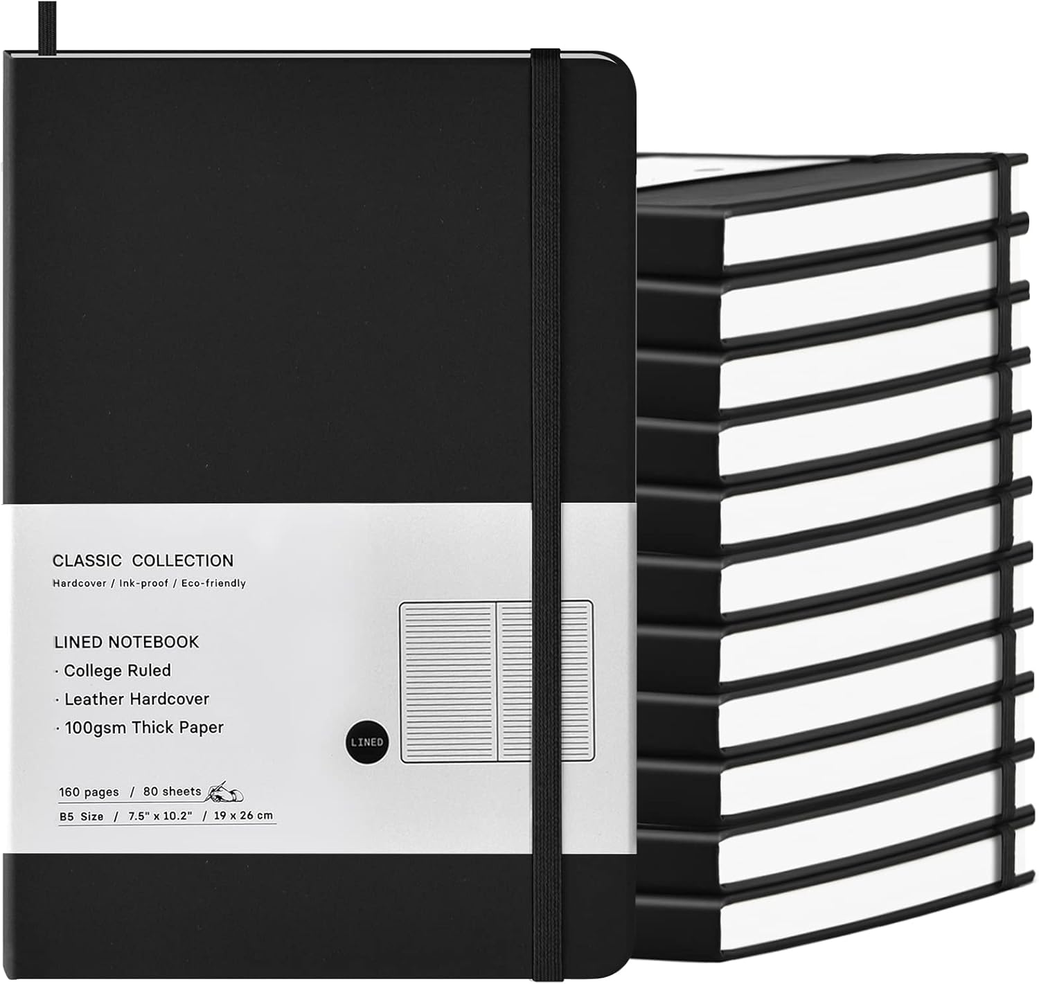 - Durable Faux Leather Hardcover:This 12-pack of B5 notebooks features smooth faux leather covers in classic black colors. These hardcover notebooks are ideal for use as leather journals, notebooks for work, or journals for writing in office, school, or business settings.