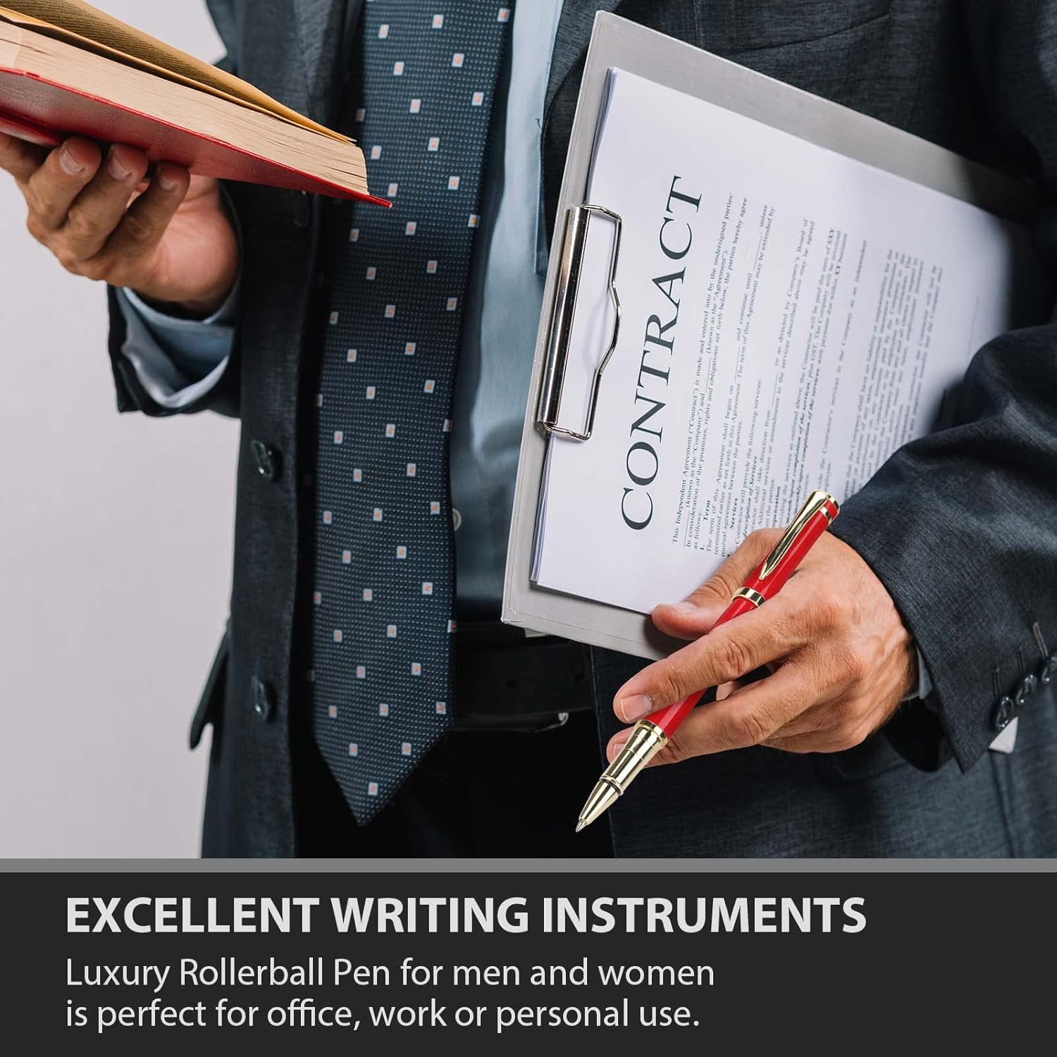 cheericome Luxury Rollerball Pen - Professional Pen, Executive Pen, Journal Pen, Perfect for Silky Smooth Writing, with Gift Box, Nice Pen for Men and Women, 2 Extra Premium Black Refills - Red