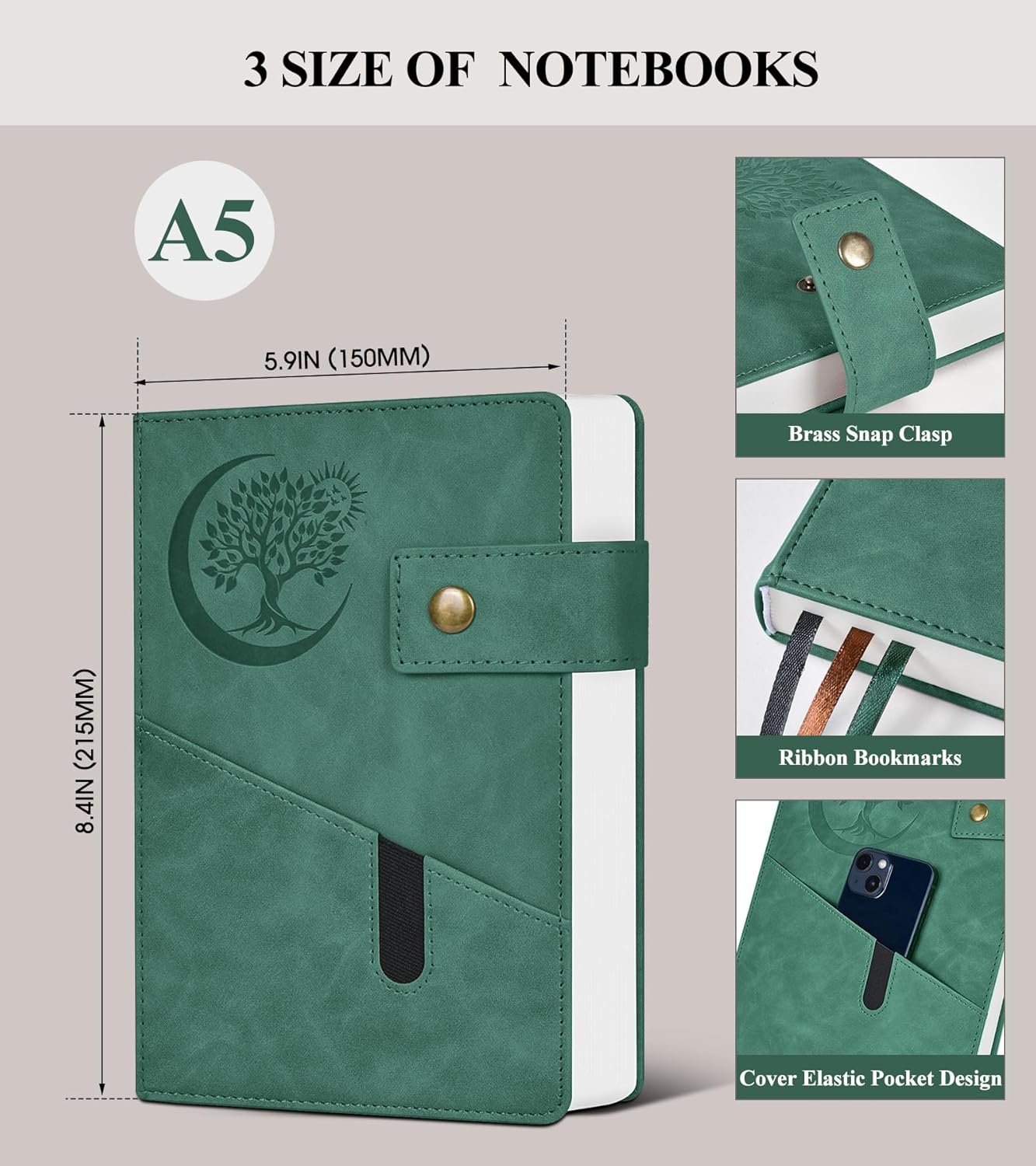 - 【CONVENIENT FEATURES FOR ORGANIZATION】:The leather journal includes 3 ribbon bookmarks, allowing you to easily mark important pages or sections. The 180° lay-flat design ensures that the notebook lies flat on any surface, making it comfortable to write in for extended periods. The metal snap closure design keeps the notebook securely closed, protecting your notes from damage.These features make the notebook a versatile tool for various settings, from work and school to personal use.