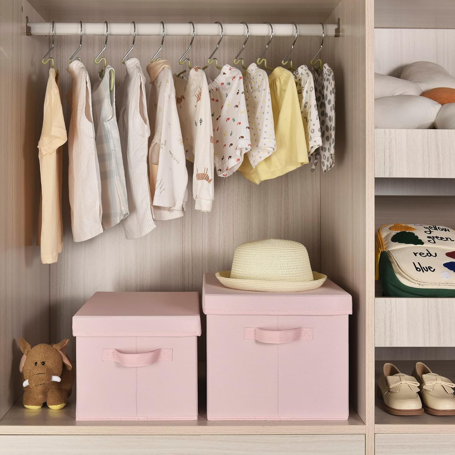 - Premium Quality - Made of non-woven fabric and reinforced with durable boards, the closet bins are rigid and stackable.