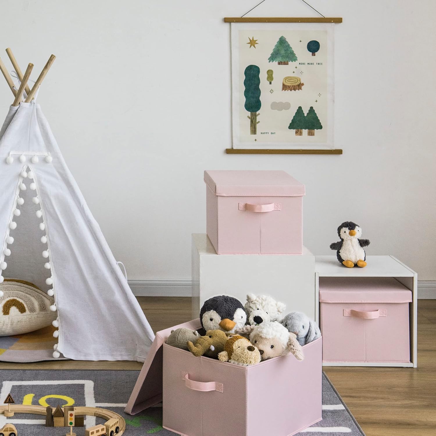 - Stackable and Foldable: The covered storage box is made of heavy-duty thick cardboard around the edges, with a thick base and lid, allowing you to maximize your storage space when stacked. When not in use, these storage boxes easily fold flat to save space.
