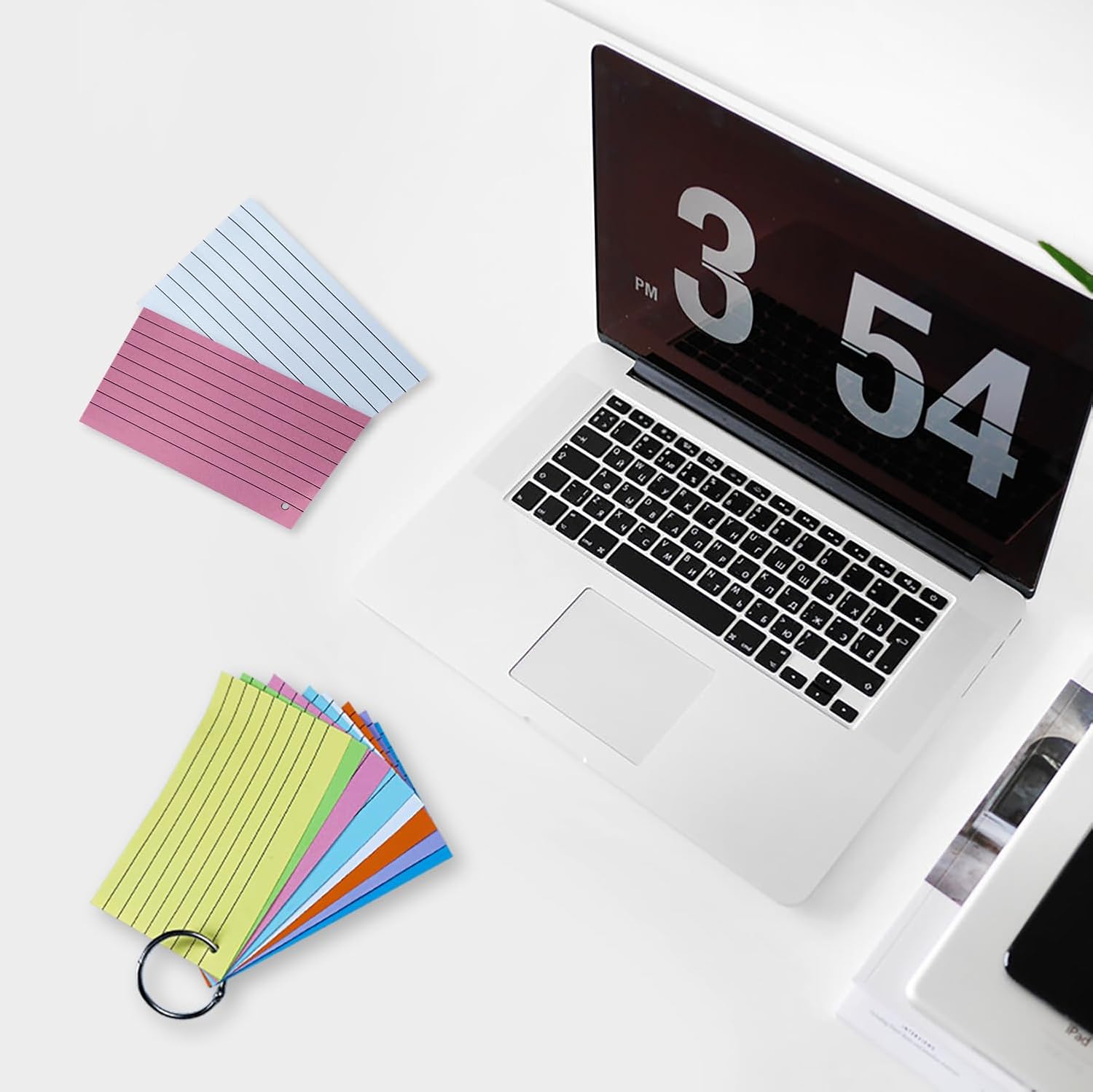 TFLFL Index Cards 3x5 Inch, 600PCS Flash Cards with Rings 8 Colors Ruled Index Cards, Assorted Lined Colored Flashcards, Thin Note Cards Paper, Study Card Memo Scratch Pad for Home Office School