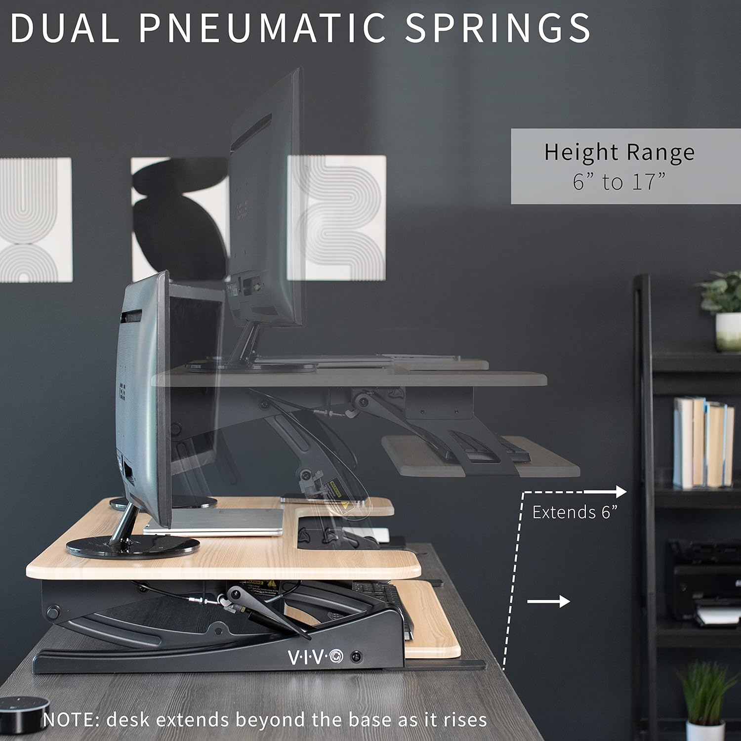 VIVO 42 inch Height Adjustable Stand Up Desk Converter, V Series, Quick Sit to Stand Tabletop Dual Monitor Riser Workstation, Light Wood Top, Black Frame, DESK-V000VLO