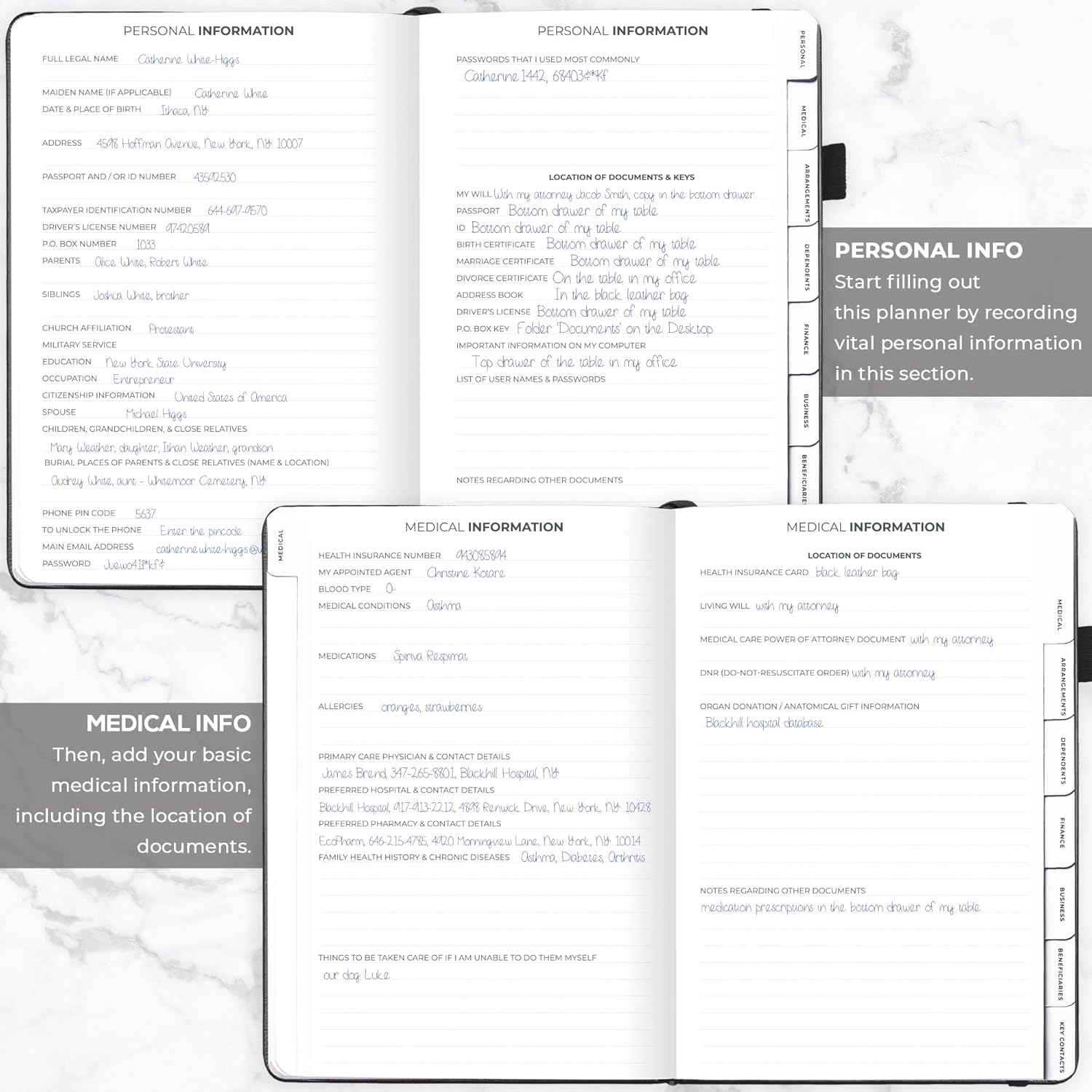 - PREPARE DETAILED INSTRUCTIONS TO GUIDE YOUR LOVED ONES: This guided final arrangements planner is an easy-to-use tool for organizing all essential personal information, from medical data to passwords and financial records.