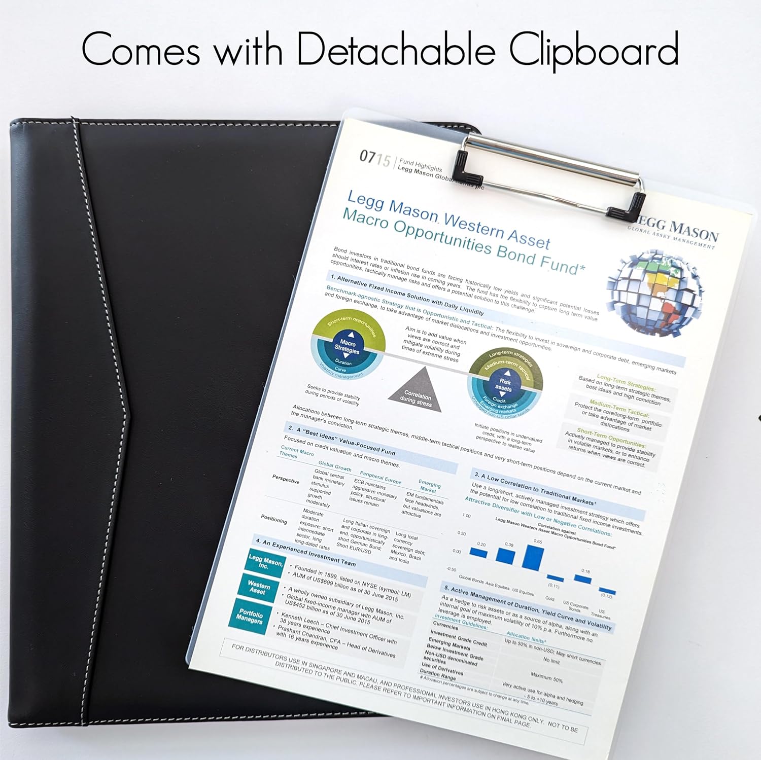 - ā STYLE MEETS FUNCTION: Elegant portfolio folder featuring a removable clipboard. New slim 360 degree flip design enables you to fold the padfolio back on itself, so you can lay it flat and write flat life a conventional clipboard.