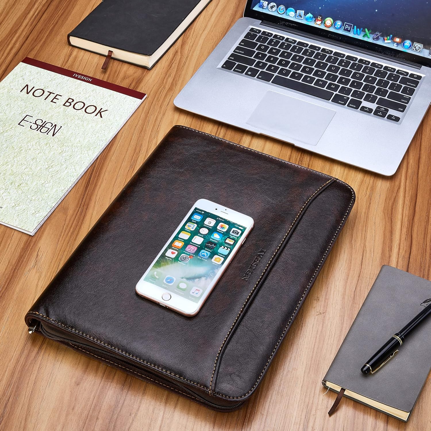 IVESIGN Zippered Padfolio Binder, Faux Leather Organizer with 3-Ring Binder, Left-Handed Design, Business Card Slots & Document Folders - Professional Padfolio for Office (Dark Brown)