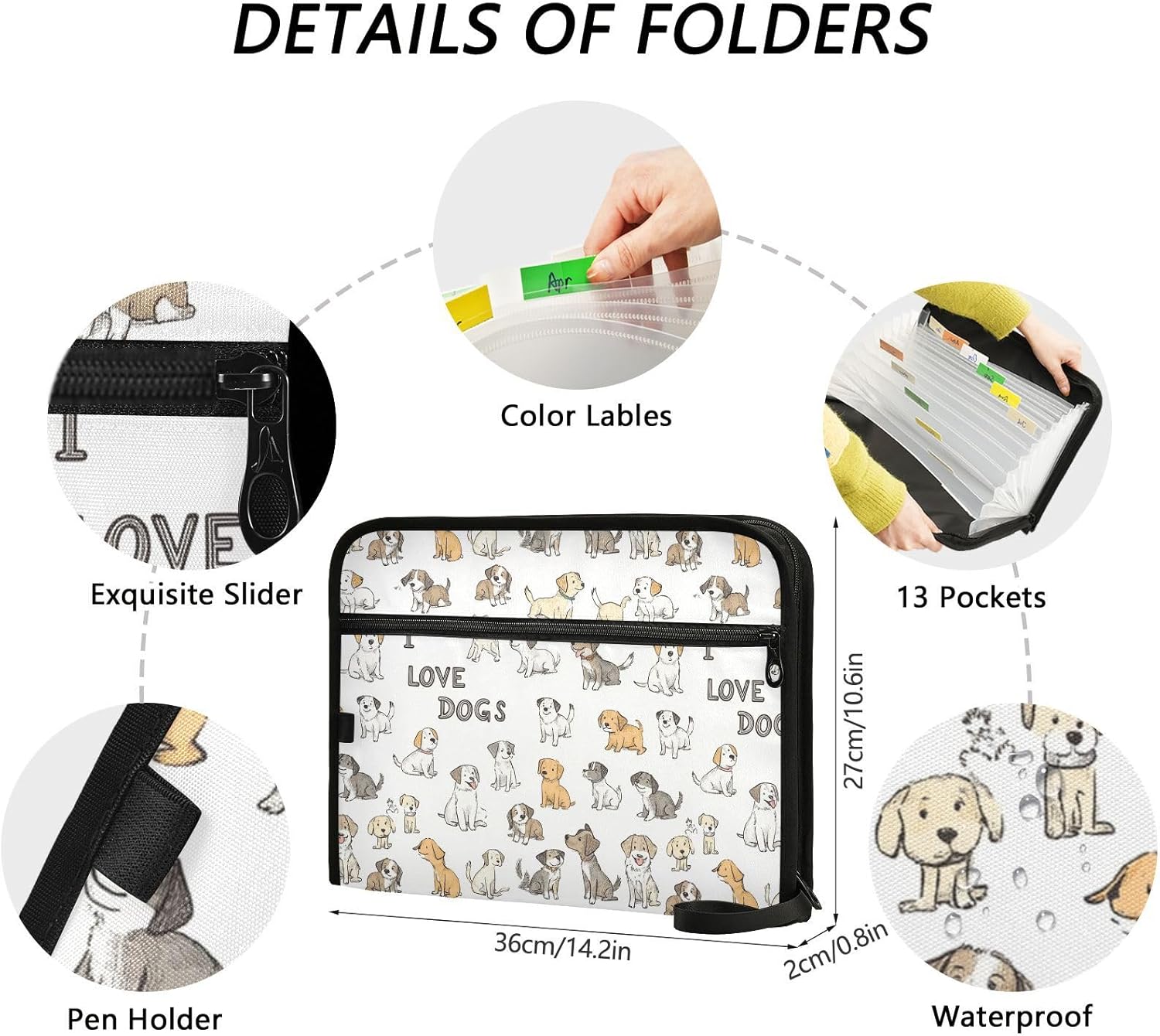 Gredecor Adorable Dogs and Bone Expanding File Folder 13 Pockets Puppy Aniamals Expandable Filing Folders Accordion Document Files Organizer for A4 Letter Size Paper