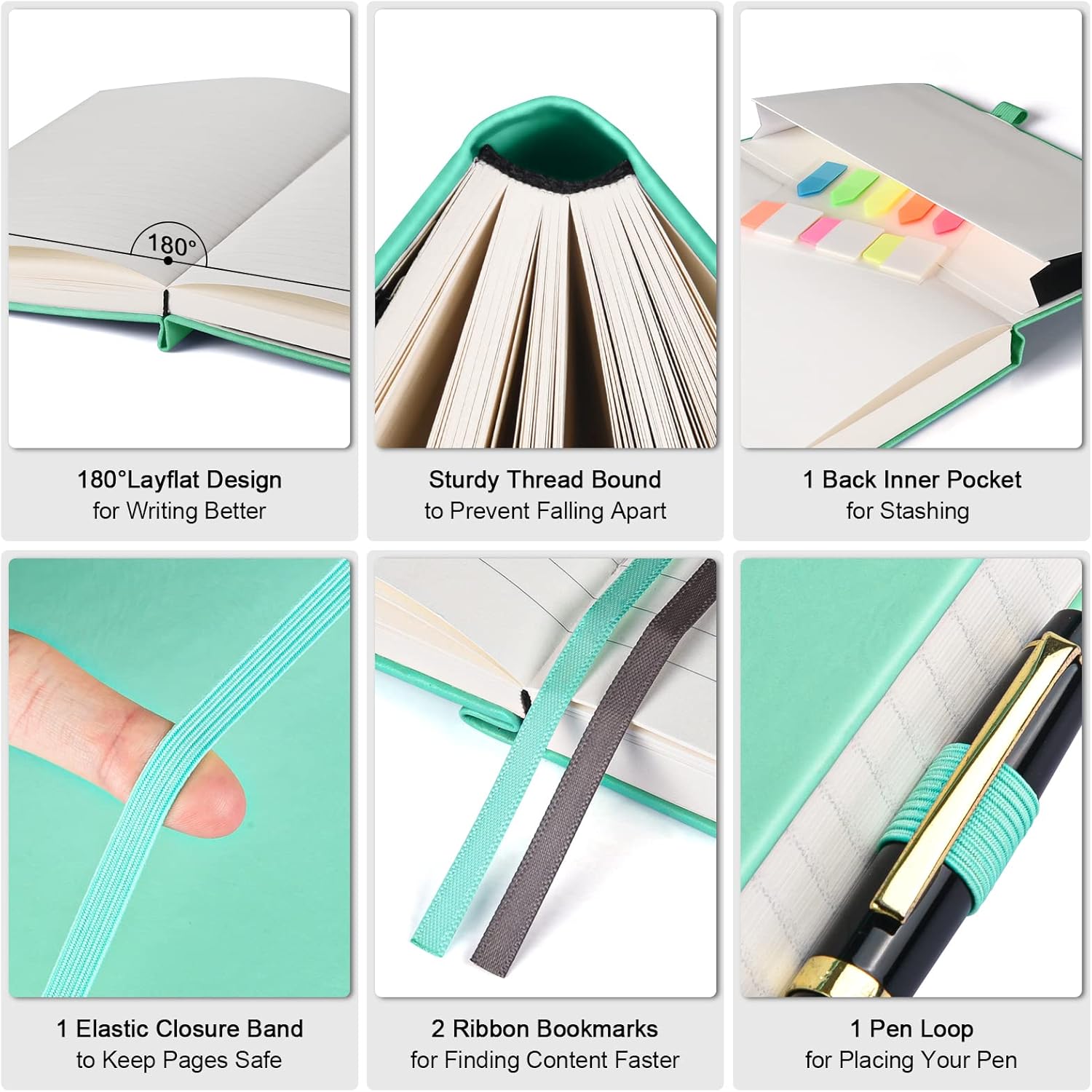 - 【User-Centered Design】5 Contents Pages for logging more entries; 2 Ribbon bookmarks for quick content reference; 1 Elastic closure band for secure page keeping; 1 Pen holder to keep your pen always handy; 1 Back Inner pocket for storing notes and small items; 8 Sheets of perforated page for versatile use.