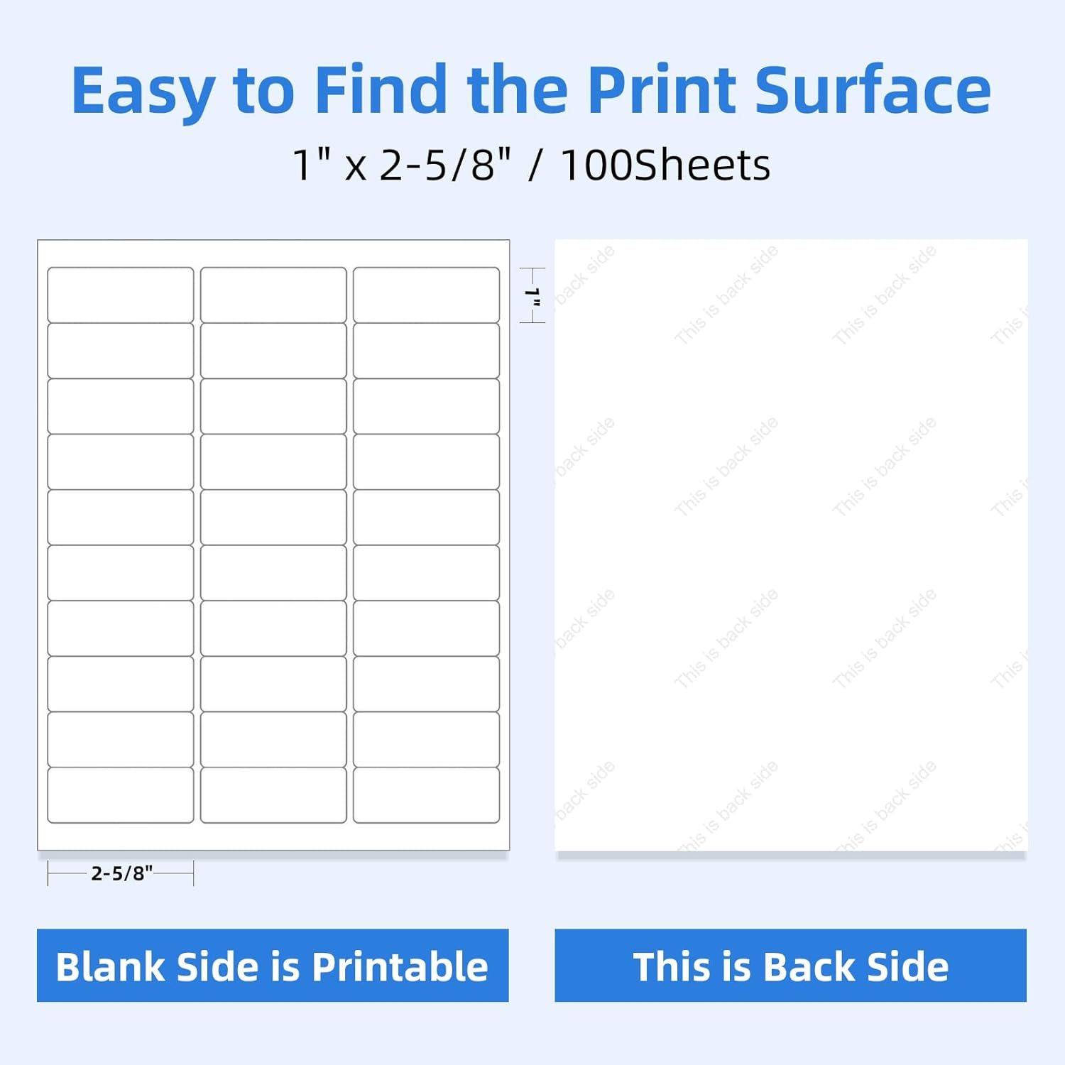 - Labels Size: Label Size: 1" x 2-5/8". Total 500 Sheets = 15000 Labels, Color: matte white.
