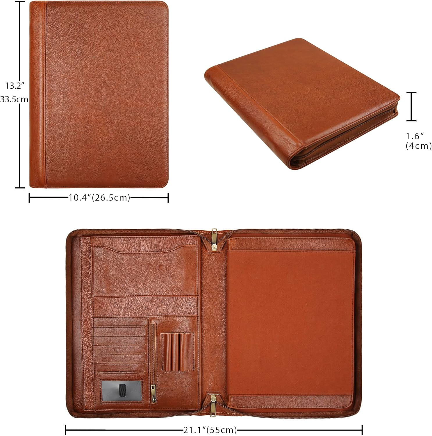 Handmade Genuine Leather Portfolio Organizer for IPad/Document, Business Padfolio with A4 Leather Notepad Holder, Leather Compact Folder Conference Portfolio for Men and Women, Oil-Brown