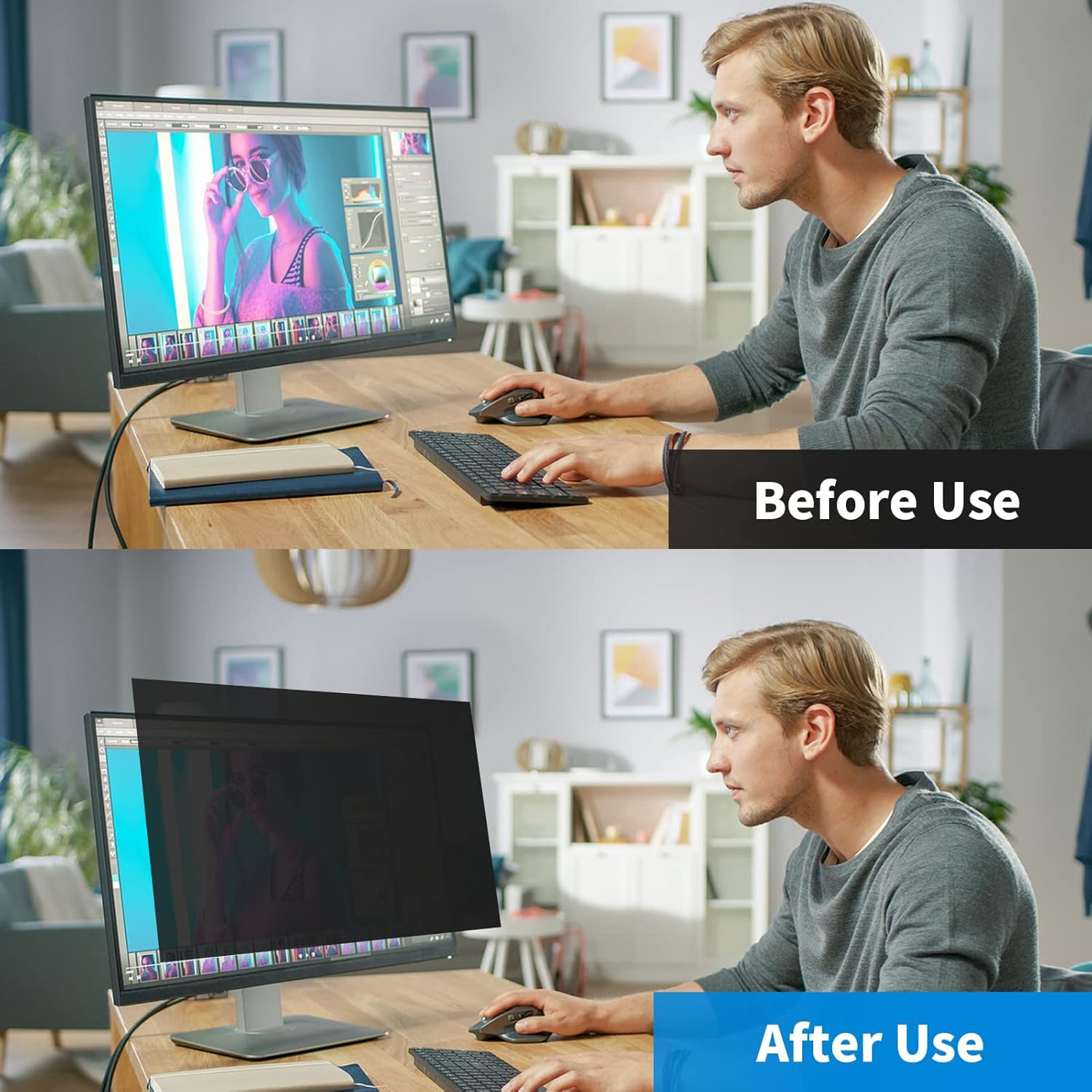 - 【Computer Privacy Screen 27 Inch】27 inch monitor privacy screen filter is not only protected your private life but also protect your eyes by blocking 90% blue lightan and 96% UV .Our computer monitor privacy screen also helps keep your screen safe from dust and scratches.