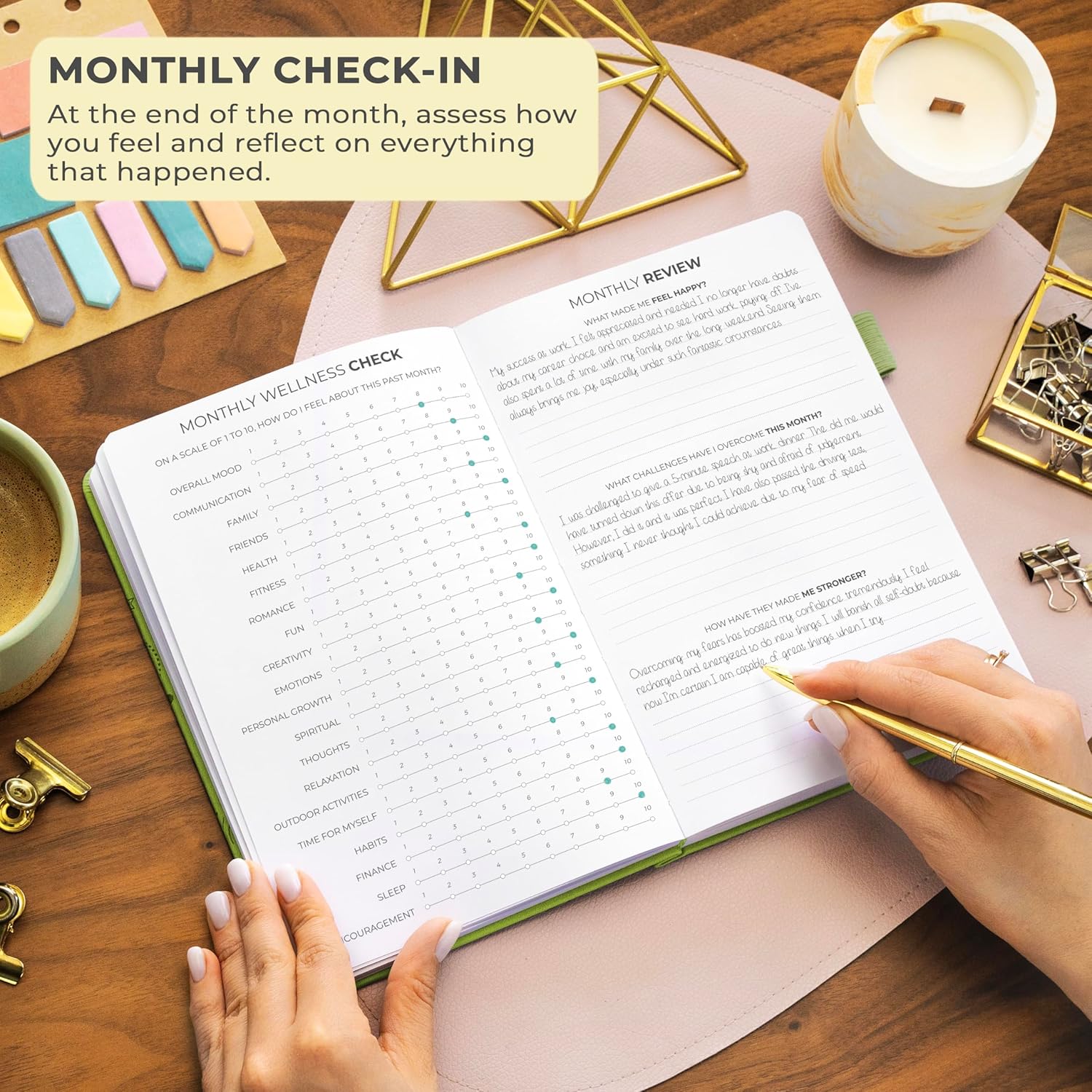 - STIMULATE GROWTH WITH DAILY REFLECTION: Reflect on your day and foster self-awareness with evening reflection pages and regular weekly exercises.