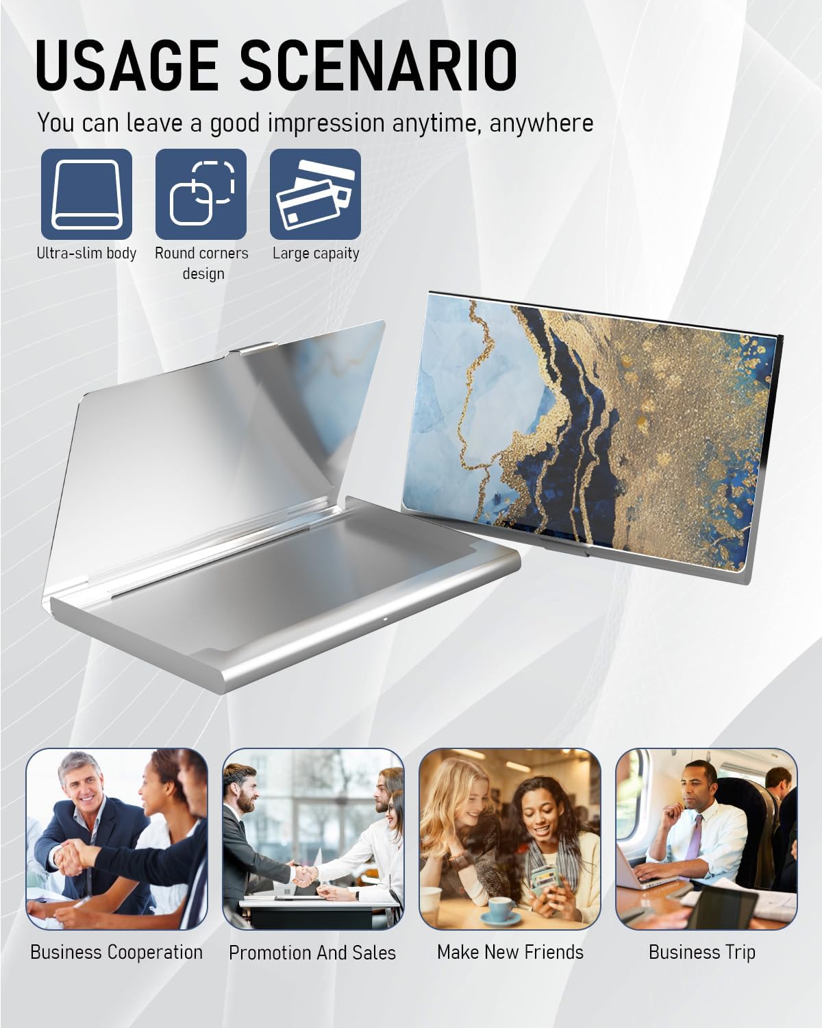 - 【Protected Metal Card Wallet】The business card case is made of stainless steel, which is sturdy and durable.The smooth long-handle latch is safe and reliable. The surface is designed with closed drop glue and exquisite artistic illustrations to show your unique temperament.