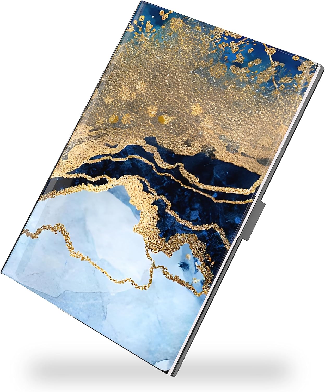 Business Card Metal Slim Organizer, Professional Stainless Steel Square Pocket Wallet for Office Workers, Compact and Portable for Pockets (Gold Black Marble)