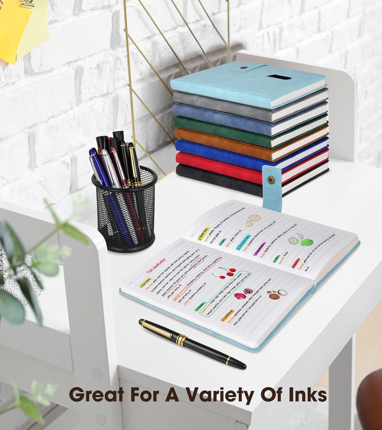 - 【GUSSETED DESIGN】:Gusseted pocket design and cardboard bound cover, metal buckle helps keep notebook securely closed, making it easy to write in the notebook from just about anywhere. This notebook provide you a high quality writing experience. expandable gusseted pocket for stashing loose notes,business cards, receipts, mobile phone, or other small items.