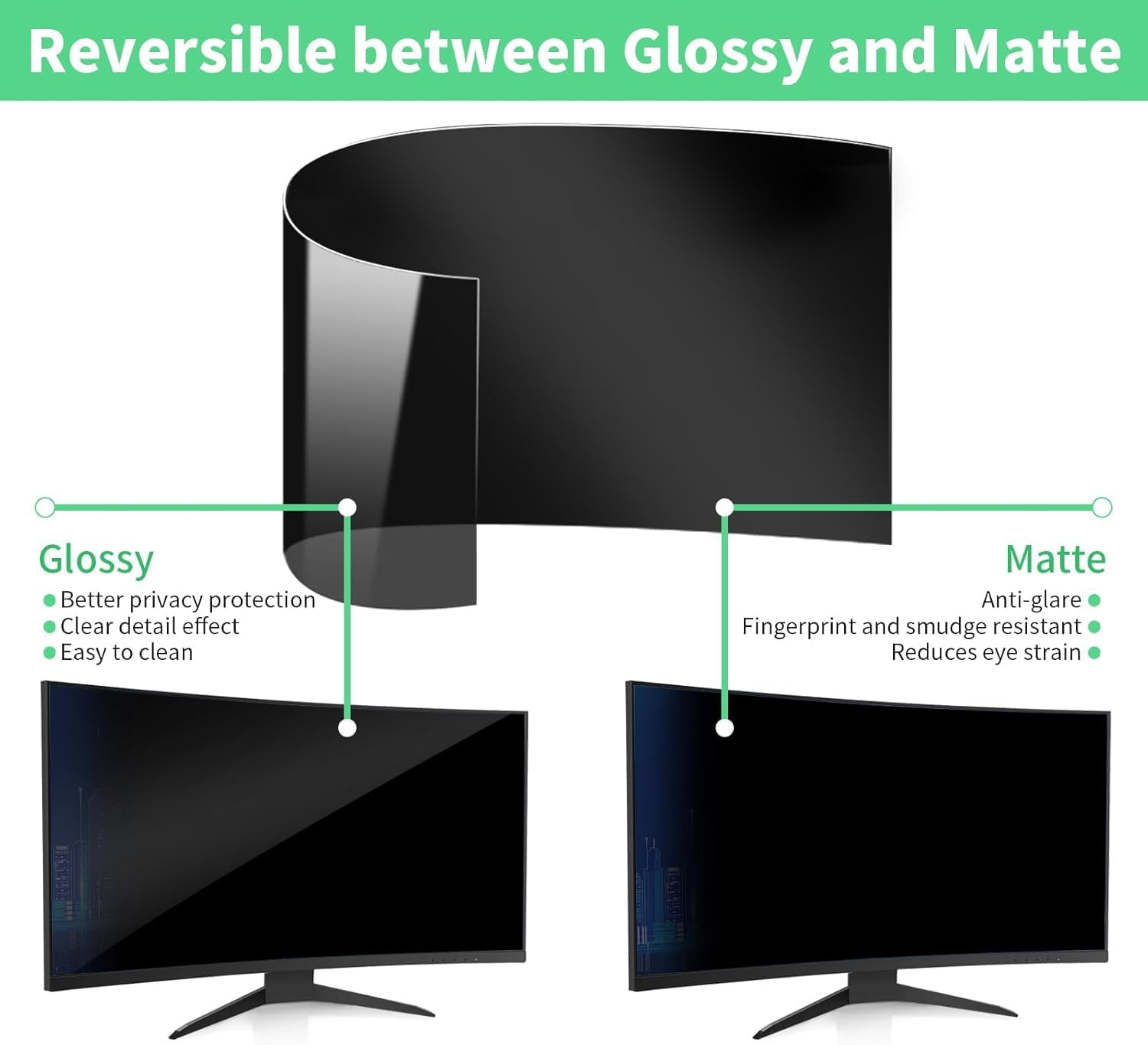 32 Inch Curved Computer Privacy Screen Filter for 16:9 Widescreen Computer Monitor Computer Screen Protector Computer Screen Privacy Shield Anti Glare and Blue Light