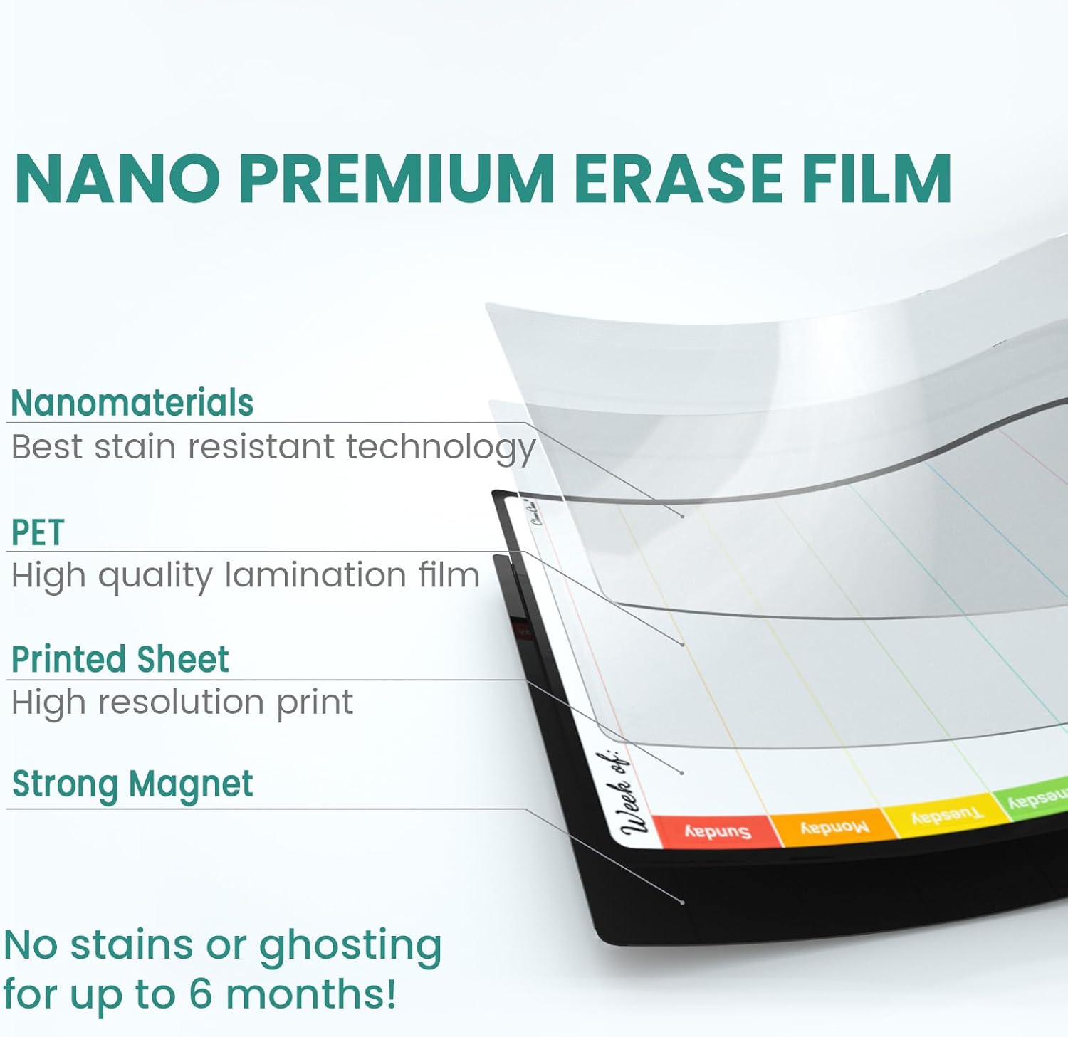- Erases easily - Our calendars use premium nano erase film, making it incredibly easy to wipe off notes, even those that have been written for a long time. No residue, no fuss.