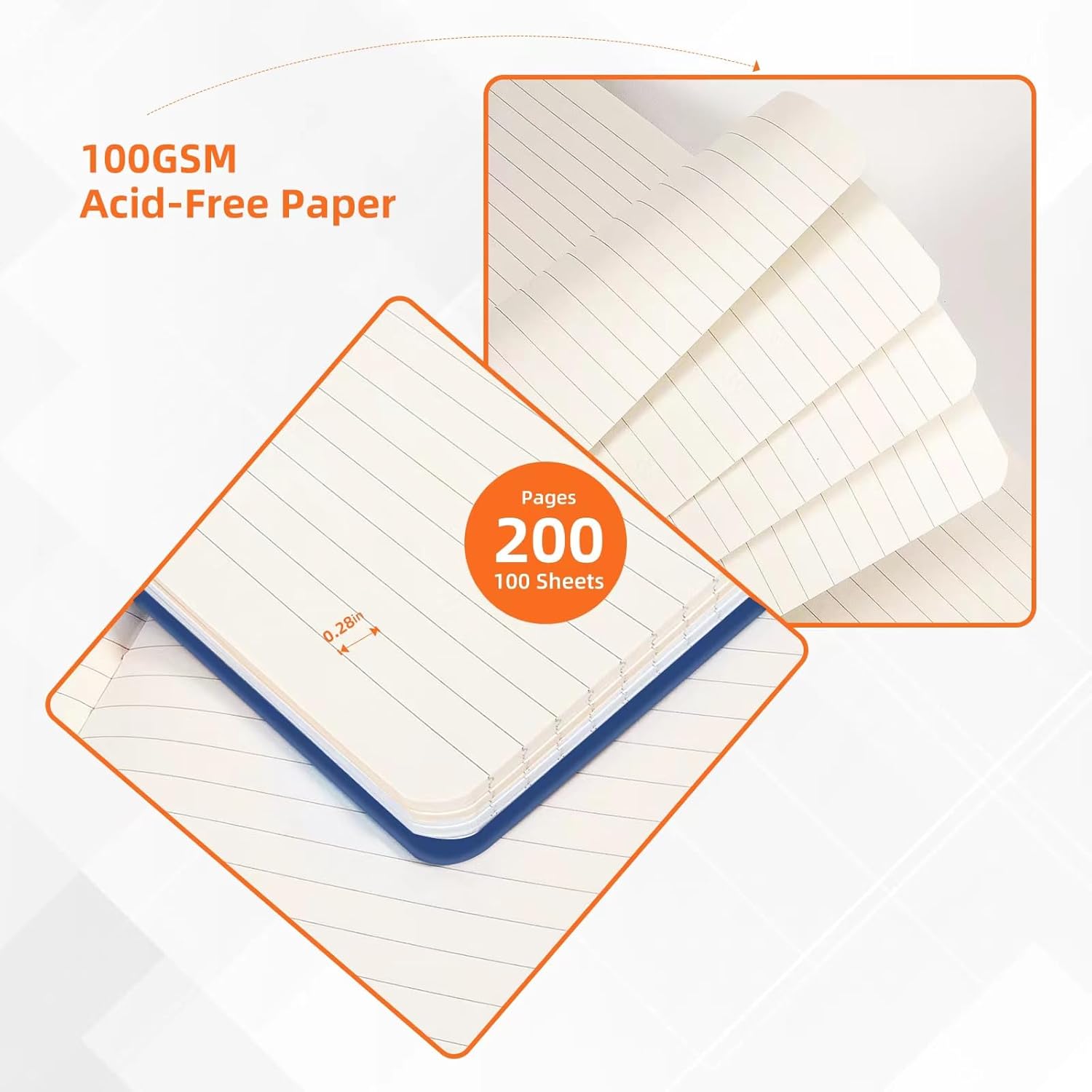 - NO BLEED THROUGH & GHOSTING - Bossand notebook is made with 200 pages high-quality, 100 gsm acid-free paper, the premium thick paper ensures a smooth touch and prevents ink from bleeding through the pages, ghosting, or discoloration. Whether you prefer fountain pens, gel pens, or ballpoint pens, this journal is suitable for most writing instruments.