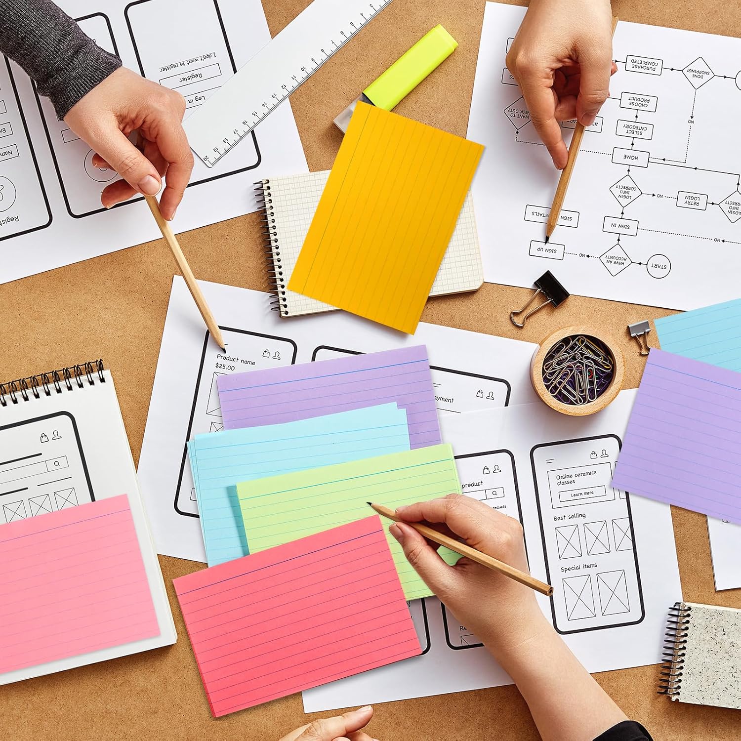 - Abundant Quantity: there are 2100 pieces of ruled index cards in 7 colors, including orange, pink, green, purple, blue, yellow, and white, 300 pieces per color, sufficient quantity and diverse colors can meet your daily using needs. Note: This is not a hard card