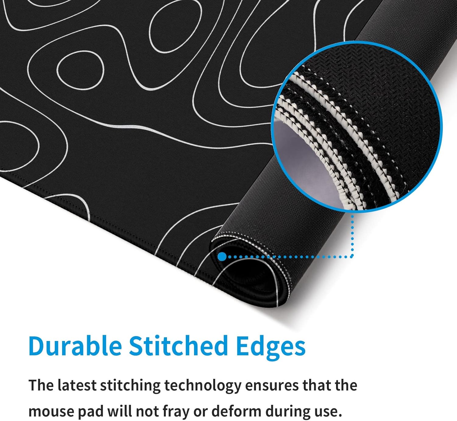 Large Topographic Map Gaming Mouse Pad for Desk Black Desk Pad with Non-Slip Rubber Base Stitched Edge Desk Organizers and Accessories Desk Decor