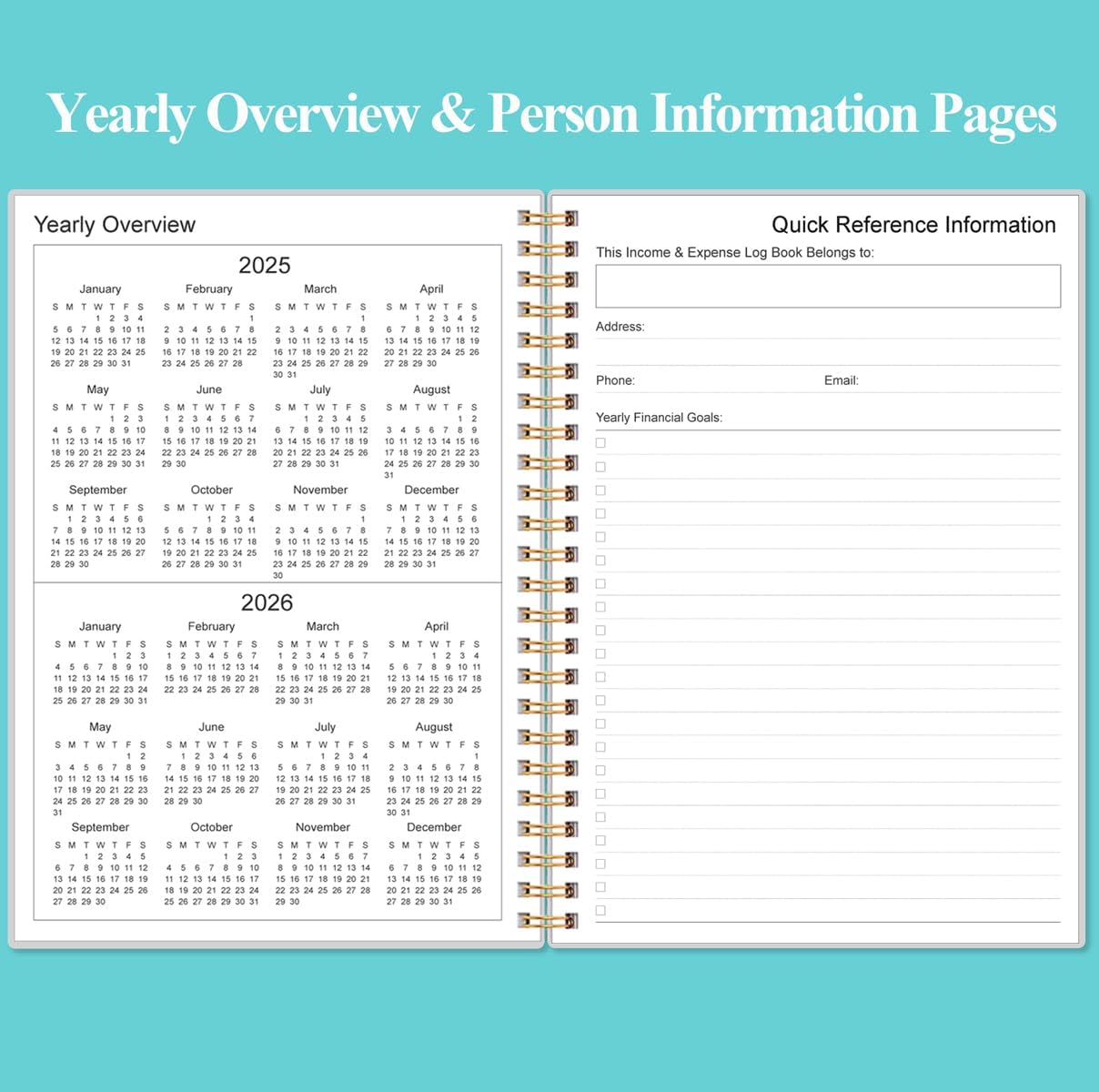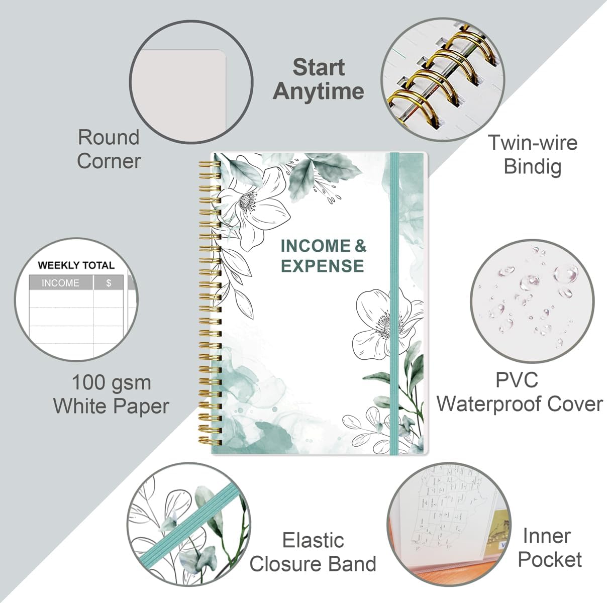 - UNIQUE DESIGN & A5 SIZE - Income and expense log book is spiral bound design, size of 5.8" x 8.3". Just the perfectly size to fit in your backpack, purse or laptop case. Without taking up your space and always helping you keep track of your small business