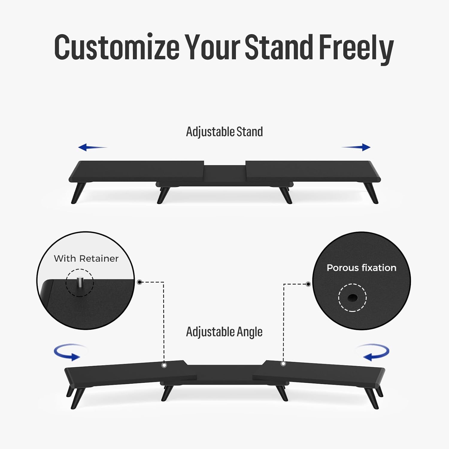 loukin Dual Monitor Stand Riser for Desk, 43.6"*8.2"*3.2" Large Computer Stand for 2 Monitors, Laptop, Printer, Length and Angle Adjustable Computer Shelf, Home Office,Max 43.6" Length(Black)