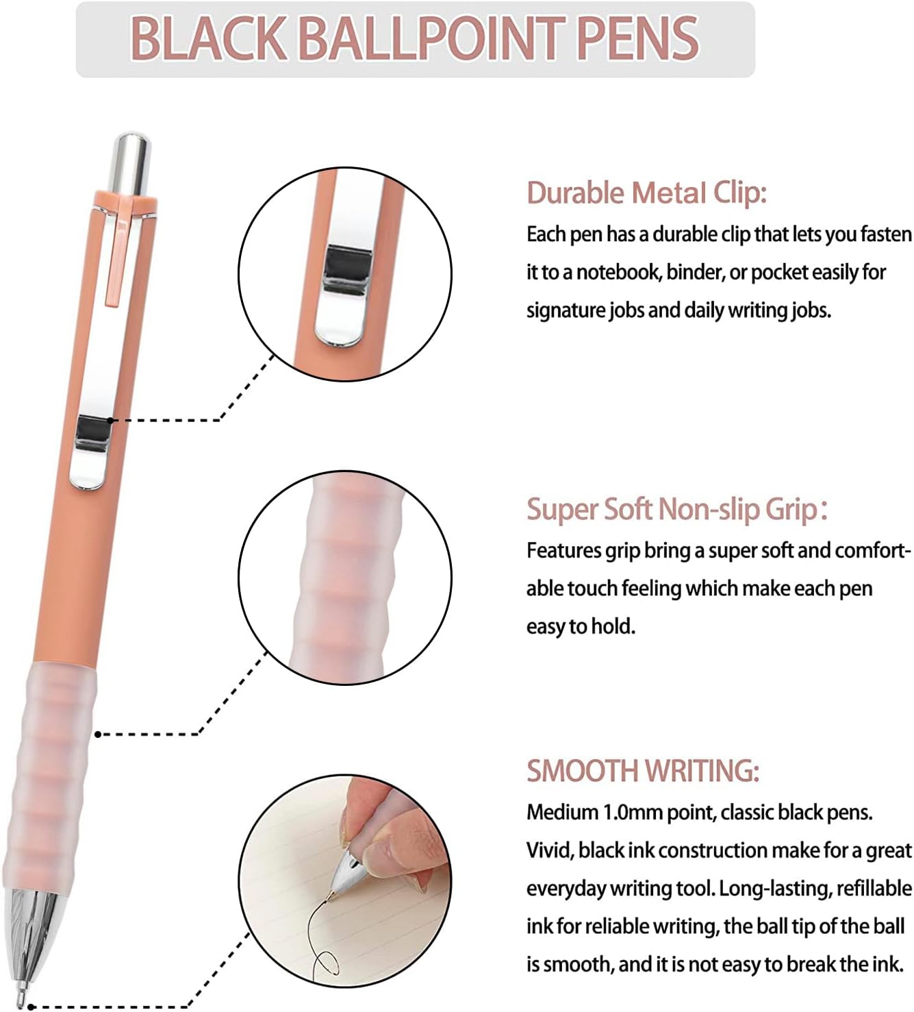 - Super Soft Non-slip Grip: Features grip bring a super soft and comfortable touch feeling which make each ballpoint pen easy to hold