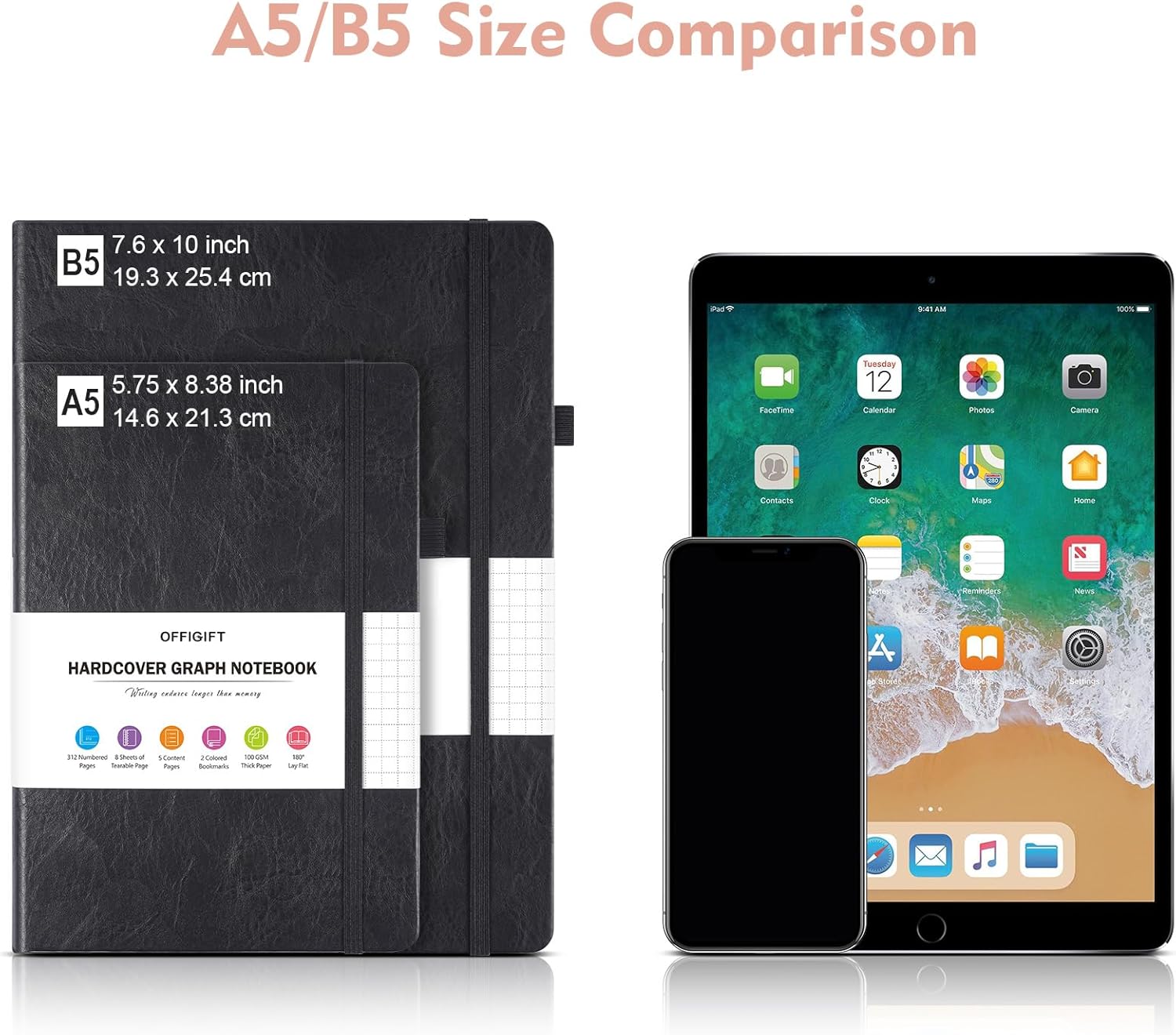 - ăThick Paper for Writing Without LimitsăLarge B5 hardcover notebook (7.6"x 10"/193mm x 264mm), total 320 pages, includes 312 numbered pages(equal to 156 sheets). 5 x 5mm graph grid paper(5 squares per inch). Our INNOVATIVE PAPER TECHNOLOGY on 100GSM thick paper ensures a perfect canvas for your ideas - no bleed, no ghosting, as confirmed by tests with various pens.