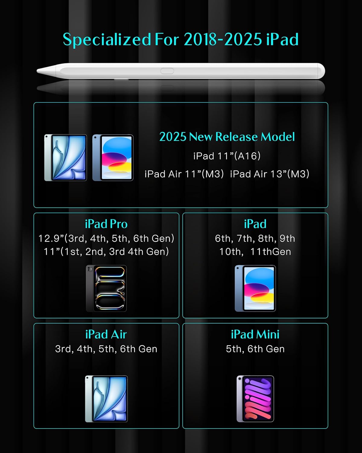 - 【Wide Compatibility – iPad Accessories for 2018-2025 Models】🔍Designed exclusively for 2018-2025 iPads, including iPad (6th-11th Gen), iPad Air (3/4/5/6/7), iPad Pro 11"/12.9"/13" (M4), and iPad Mini (5/6). Not compatible with older iPads, iPhones, Android, or Windows devices. Check “Settings > General > About” to confirm your model before purchase.