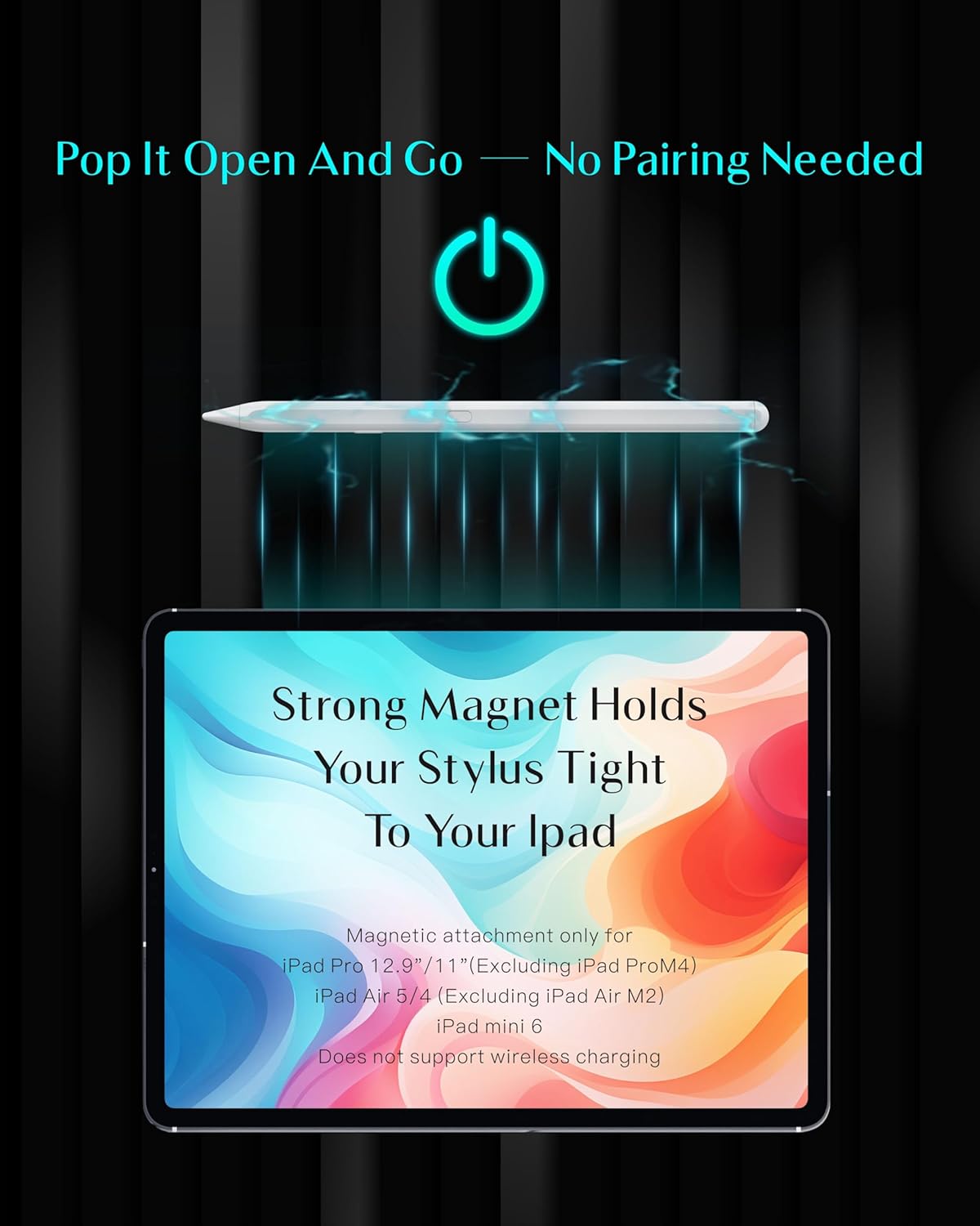 - 【Palm Rejection & Magnetic Design】 Designed to support palm rejection and tilt sensitivity, this iPad stylus pen for iPad 9th/10th generation lets you write and draw naturally without accidental touches. Its magnetic attachment secures the pen to your iPad Pro, Air, or Mini, preventing rolling and ensuring it’s always within reach – a must-have for iPad users.