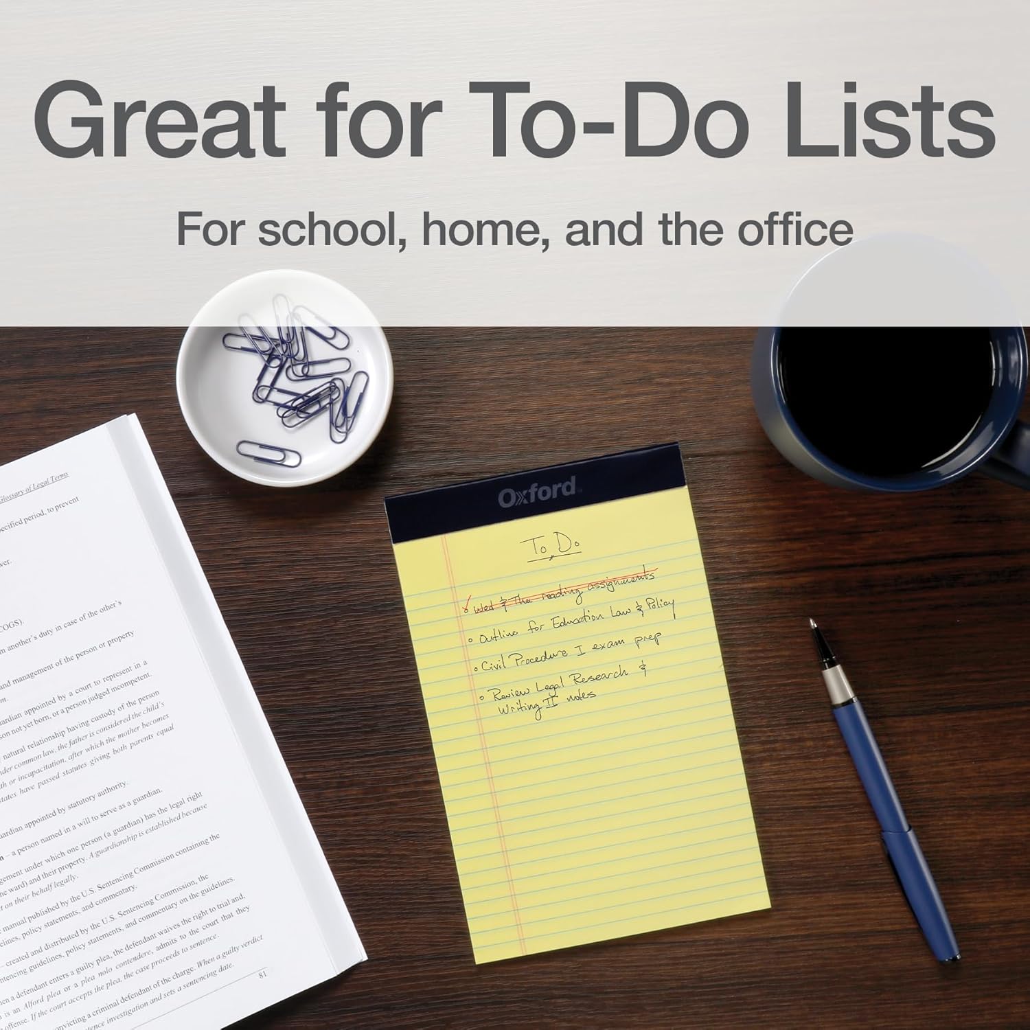 Oxford 5 x 8 Legal Pads, 12 Pack, Narrow Ruled, Yellow Paper, 50 Sheets Per Writing Pad, Made in the USA (74017)