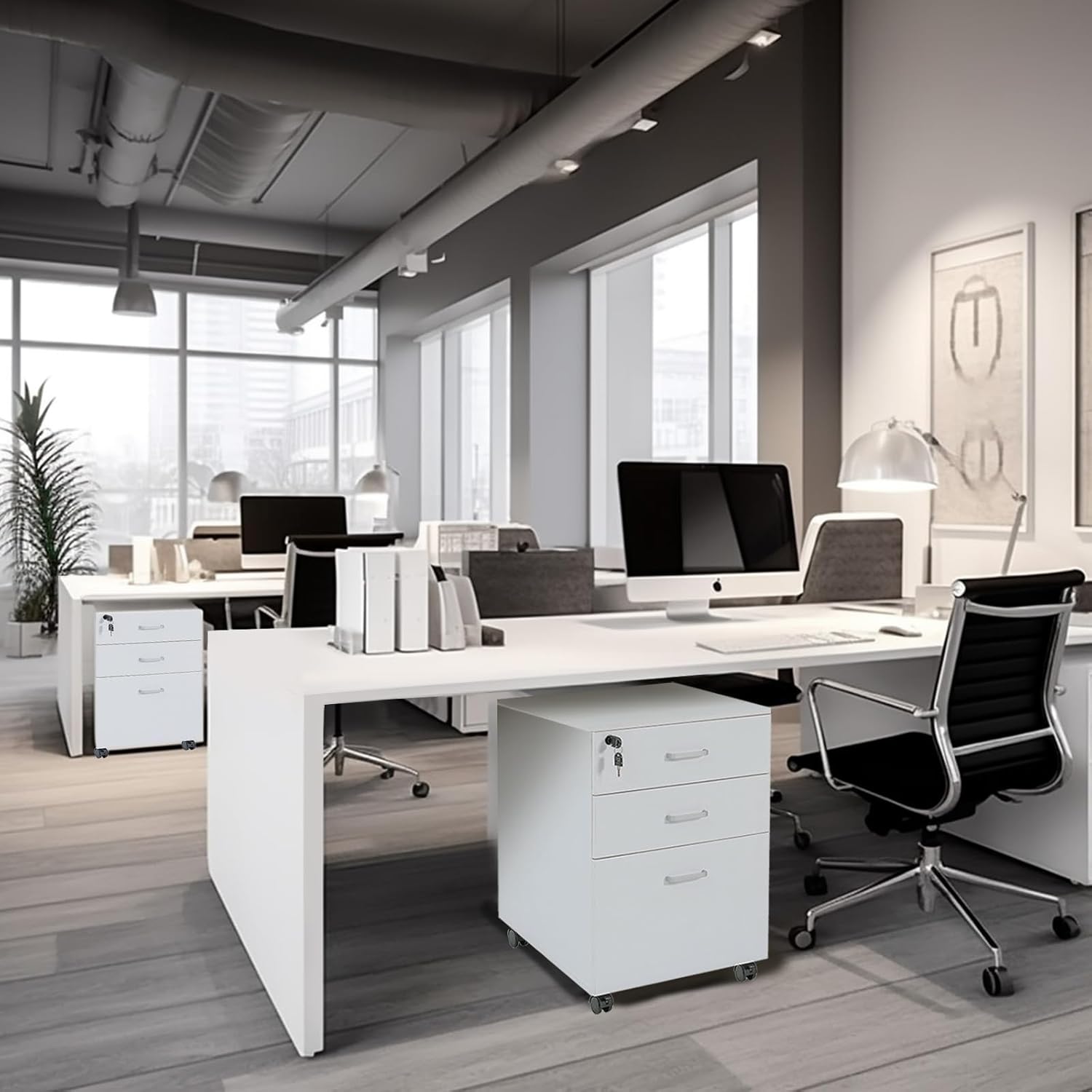- EASY TO MOVE: The filing cabinet is equipped with four rollers, which can be rotated 360°. Built-in brakes on front 2 casters to keep it in position and add stability