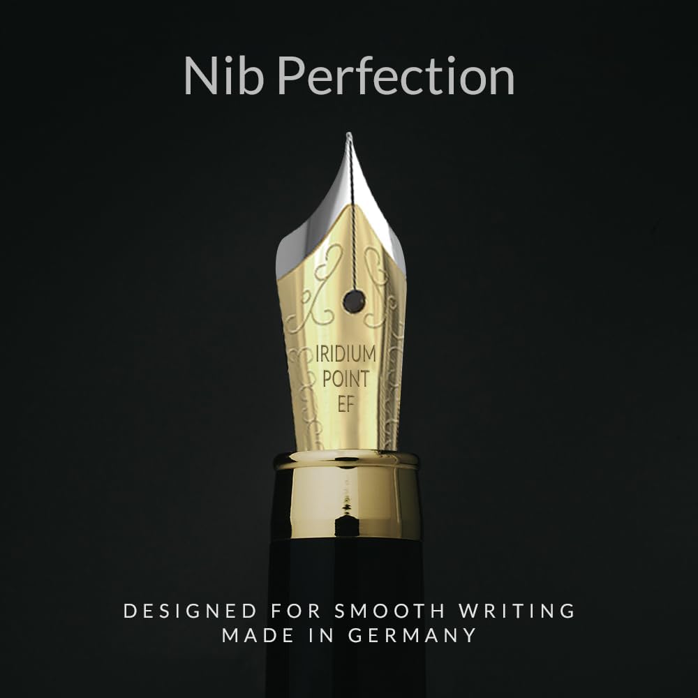 - ✒️Incomparable Quality And Exceptional Writing Experience - Effortless ink pen flow from the carefully selected German Iridium nib makes writing a pleasure. No-spill technology makes for perfect calligraphy, signatures and sketching. The unique, streamlined nib provides you with a supple thrill as it glides smoothly across the paper.