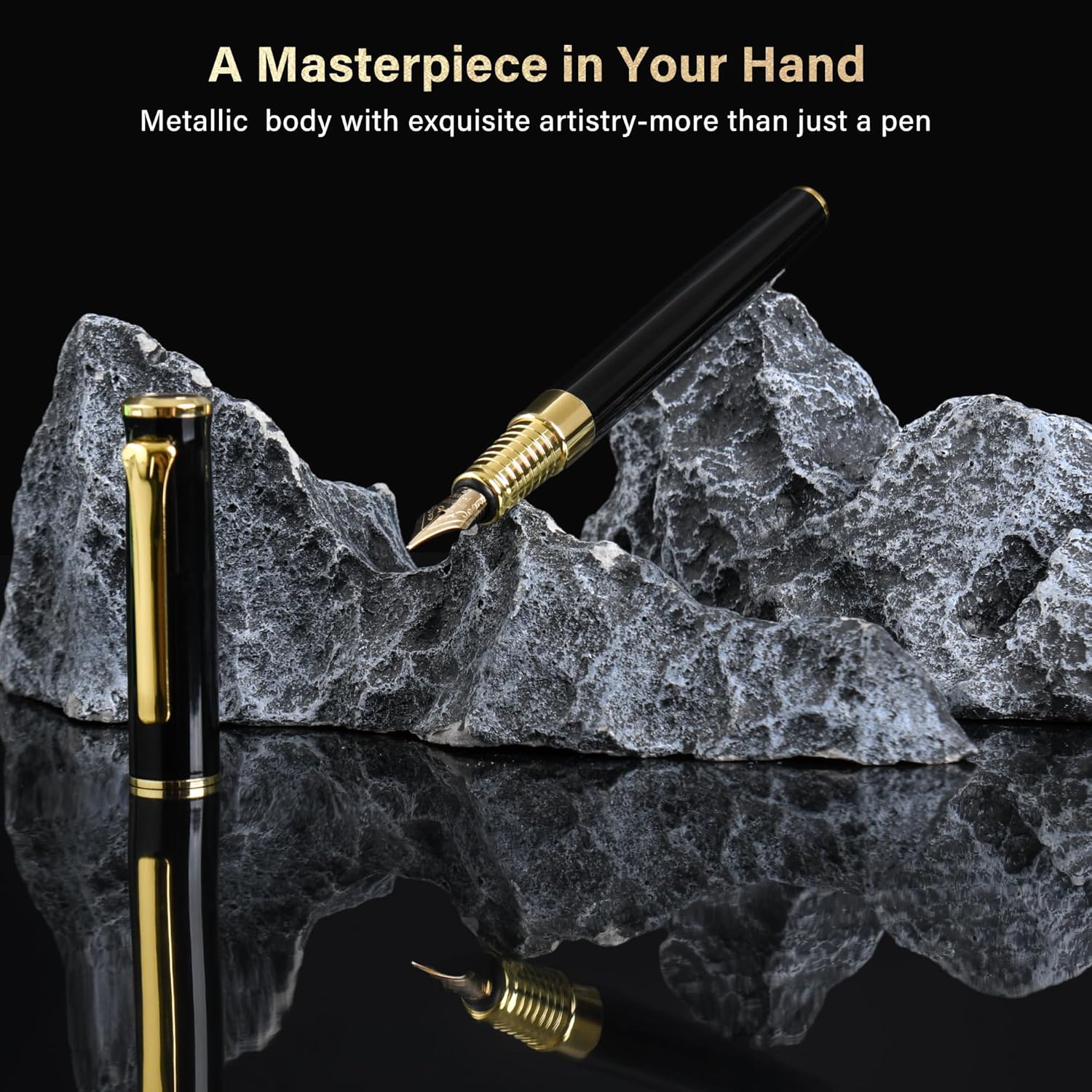 Black Fountain Pen Set, Medium Nib, Includes 10 Ink Cartridges, 2 Ink Refill Converter and Premium Gift Box, Luxury Pen Perfect for Men and Women