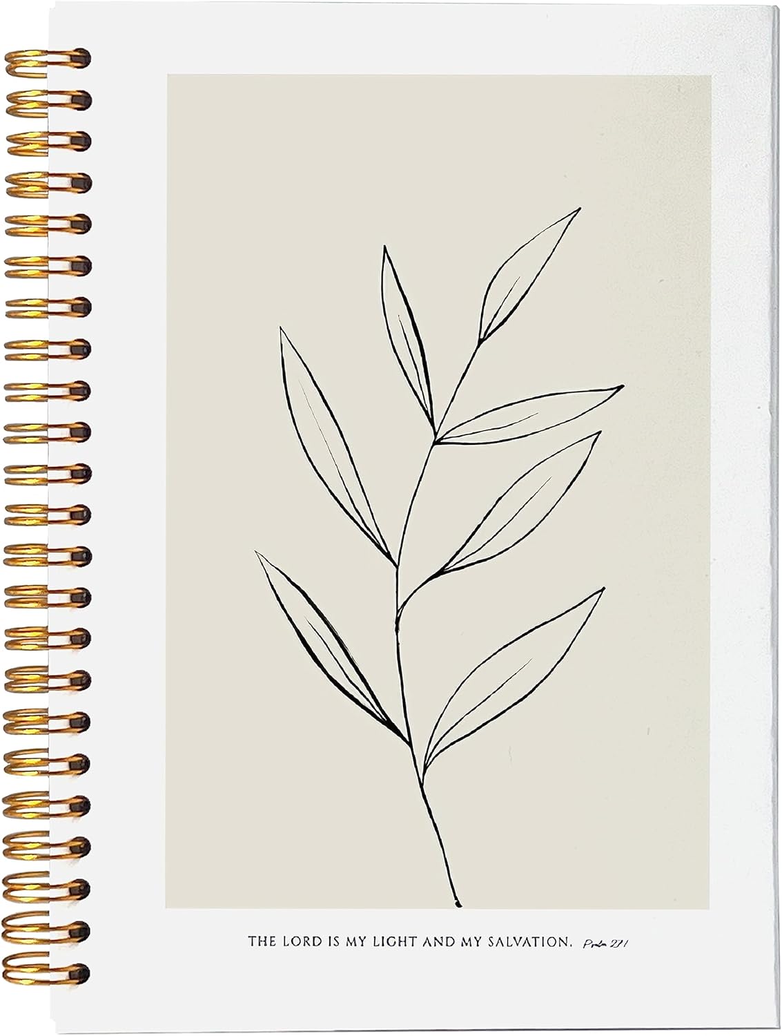 VNWEK Bible Scripture PSALM 27:1 the Lord Is My Light and My Salvation Boho Botanical Leaf Spiral Notebook Journal 5.5 x 8.3 inches,Christian Lined Hardcover Spiral Notebook,Christian Gifts