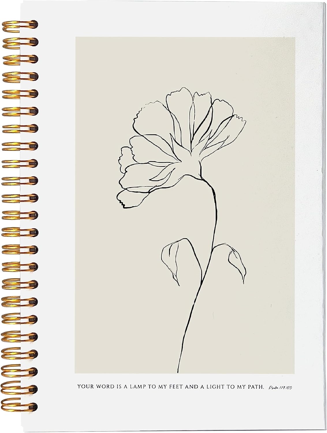 VNWEK Bible Scripture PSALM 119:105 Your Word Is a Lamp to My Feet Boho Botanical Leaf Spiral Notebook Journal 5.5 x 8.3 inches,Christian Lined Hardcover Spiral Notebook,Christian Gifts
