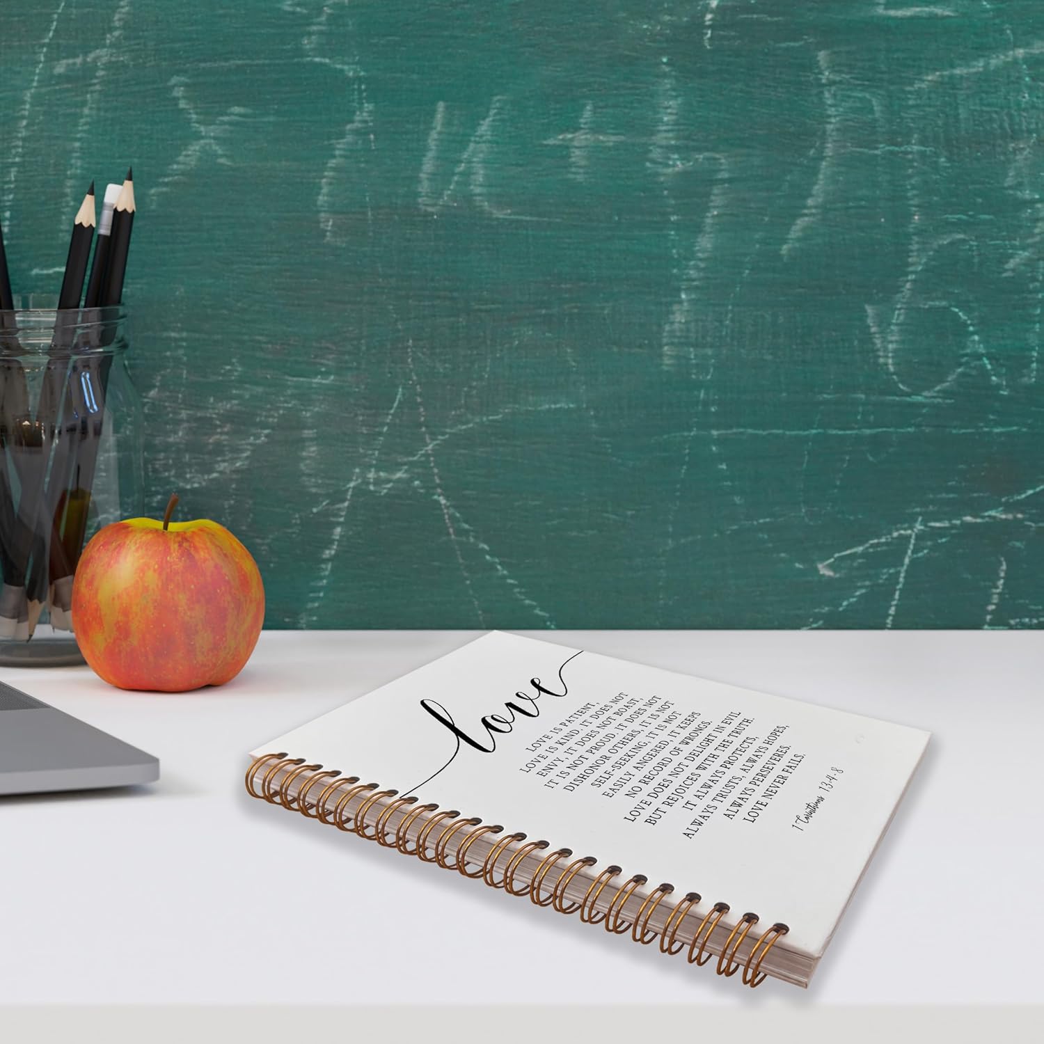 VNWEK Bible Scripture 1 Corinthians 13:4-8 Love Never Fails Spiral Notebook Journal 5.5 x 8.3 inches,Christian Lined Hardcover Spiral Notebook,Inspirational Christian Gifts for Women Men Faith Teens