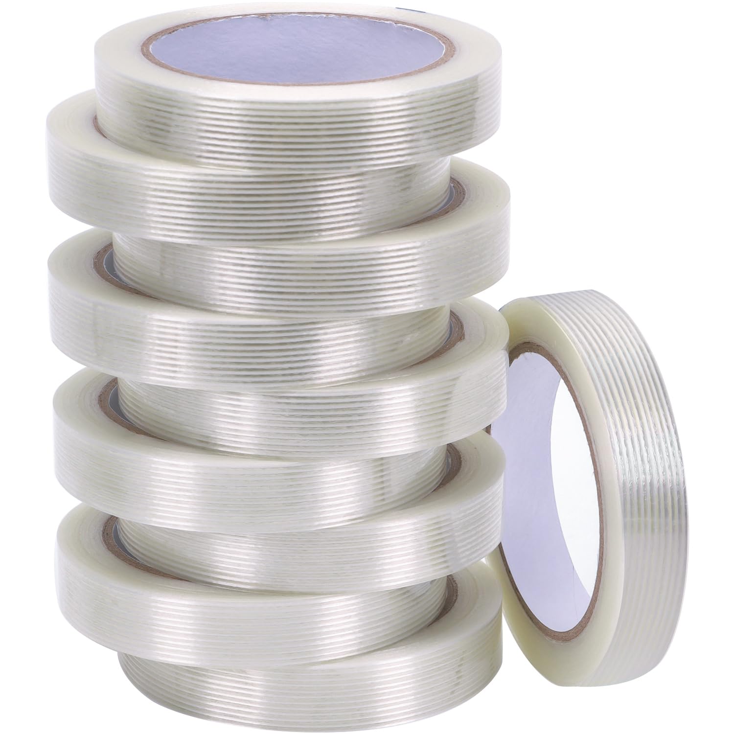 10 Pack 3/4 in×27YDS, Filament Strapping Tape, 270yds Total, Clear Fiberglass Reinforced Packing, Heavy Duty Wearproof Tape, Extra Thickness 5.5 mil