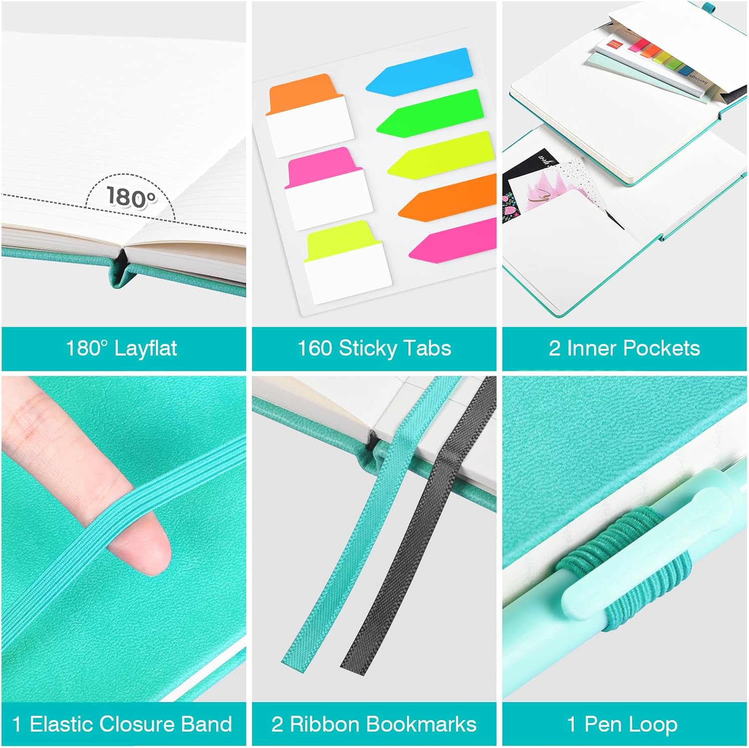 - 【Thoughtful Accessories】Our hard cover notebook comes with a range of practical accessories to enhance your writing experience. Each notebook includes 2 pockets, 2 bookmark ribbons, 1 elastic band, 1 pen loop. And as a bonus, each set of notebooks comes with 3 pens that match the color of the notebooks, along with 160 PCS colorful index & tabs stickers.